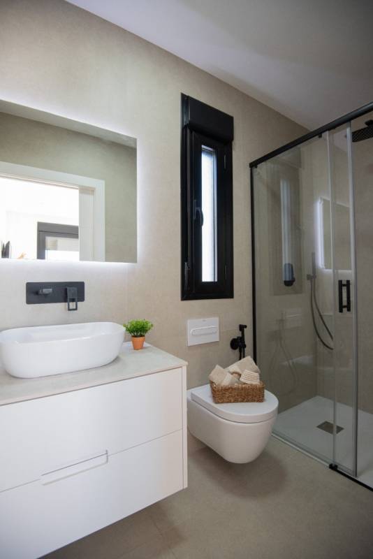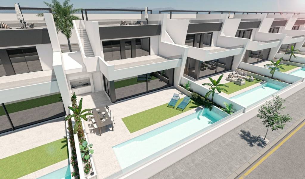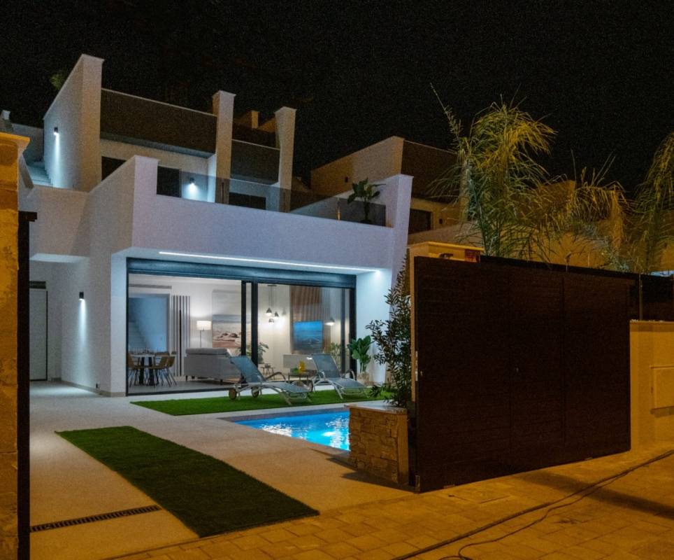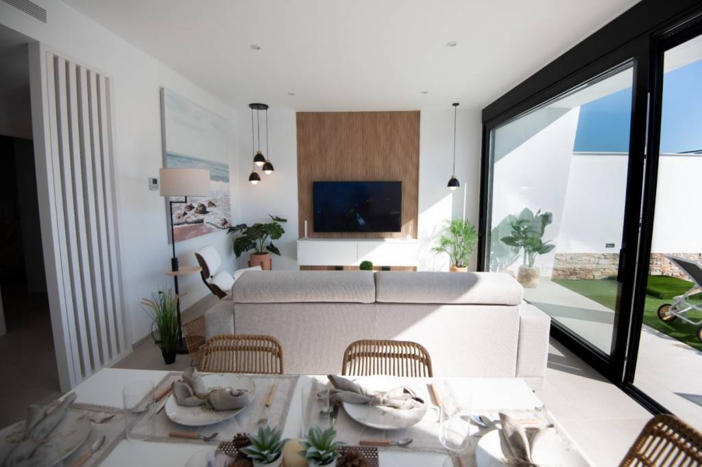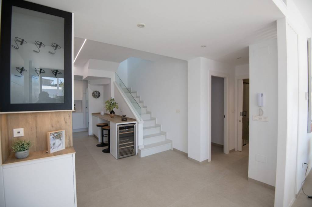 Al entrar a la propiedad encuentras un salón-comedor con vistas a la hermosa y relajante piscina privada, estas increíbles villas constan de 2 plantas con 3 dormitorios, 3 baños con suelo radiantes, cocina totalmente equipada, garaje cerrado, cesped artificial y solárium privado de entrada independiente...