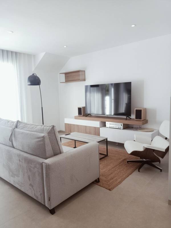 Apartamento vacacional en Santiago de la Ribera cuenta con 2 habitaciones y 2 baños, además de un acogedor salón y una cocina completamente equipada. Pero lo mejor es su solárium donde puedes disfrutar de impresionantes vistas al mar mientras te relajas al sol. La piscina comunitaria se encuentra por debajo del excelente tamaño con zonas verdes.