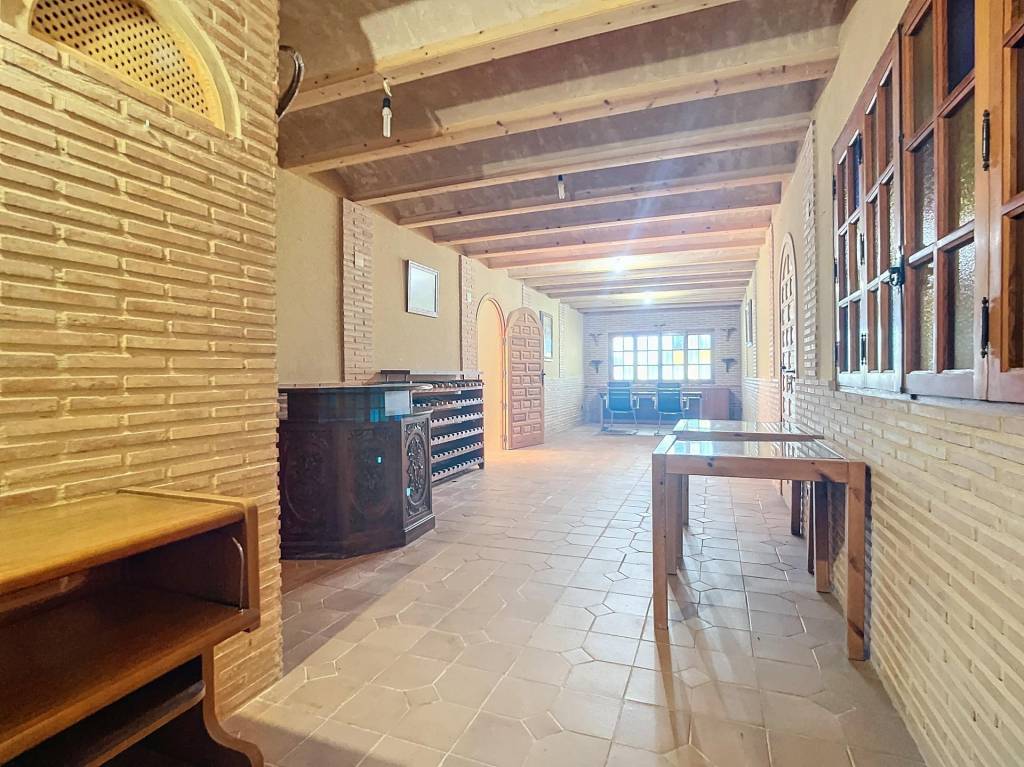 En planta baja encontrarás 493 m² construidos | 445 m² útiles con dos salones que conectan con la chimenea del comedor, 1 dormitorio con aseo con posibilidad de poder ampliarlo con una sala contigua , baño principal con ducha , cocina cerrada equipada con encimera de granito y zona de almacenaje, sala tipo restaurante para grandes reuniones con sus aseos , garaje para dos vehículos además también cuenta con un lavadero con acceso al patio central, de 39 m², hace de plaza privada , la cocina exterior dispone de barbacoa de 11 m² y su terraza de 10 m² techada , amplia despensa independiente además de un pequeño cuarto trastero .