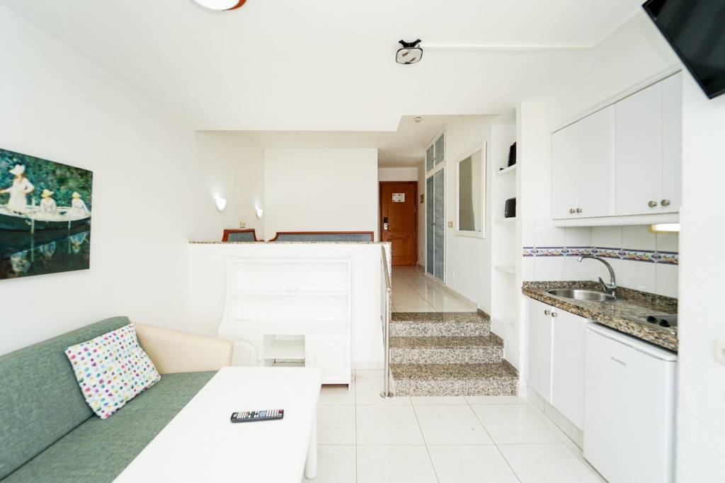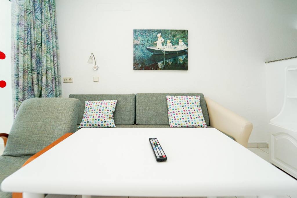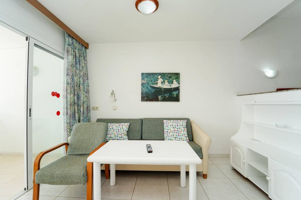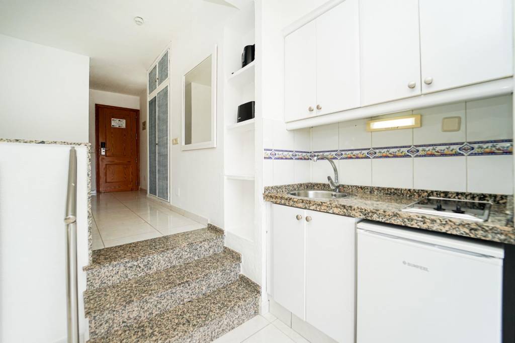 Este acogedor estudio destaca por su buena iluminación y un aprovechamiento eficiente de los espacios, creando un ambiente cómodo y funcional. La zona de estar conecta con una terraza ideal para desayunar al aire libre y disfrutar de las vistas al mar.