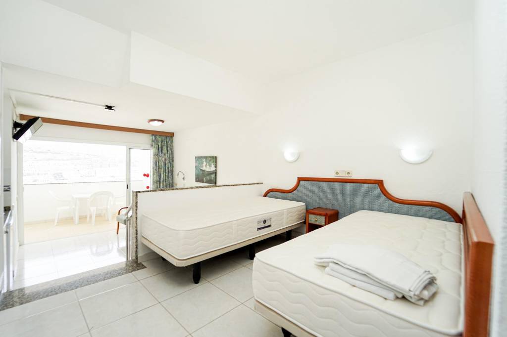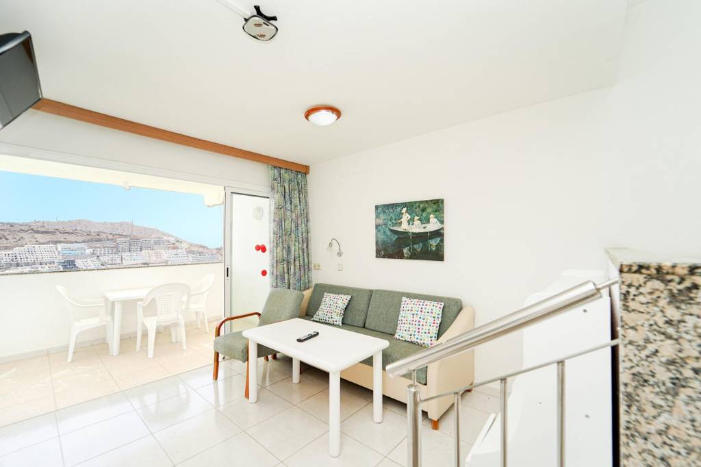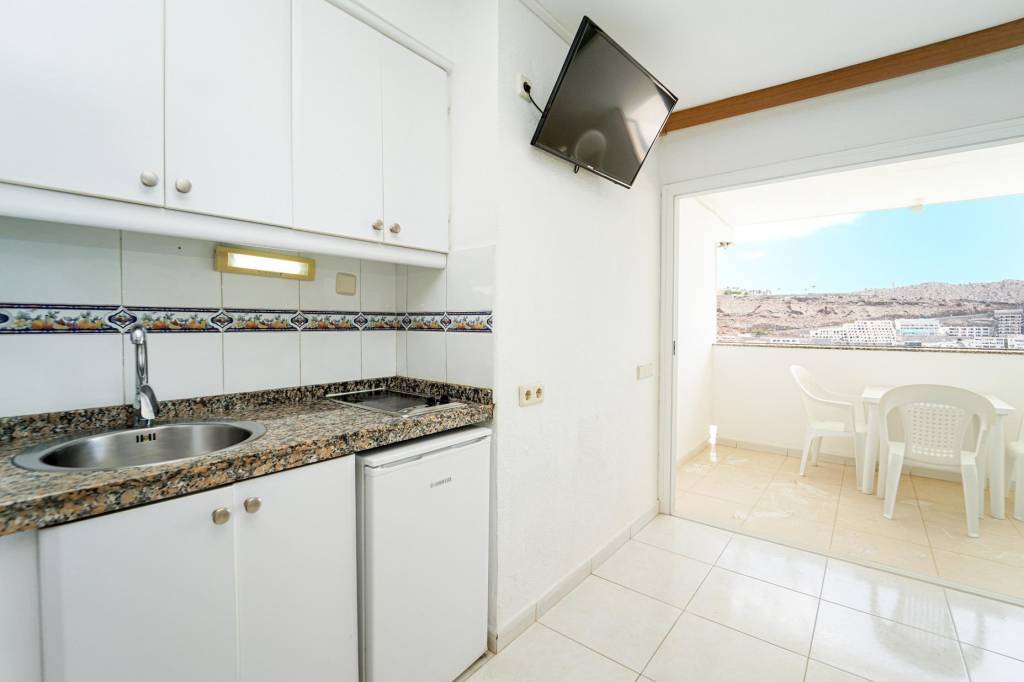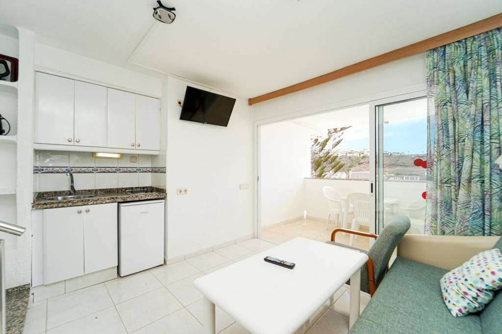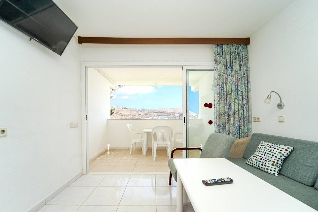 Este acogedor estudio destaca por su buena iluminación y un aprovechamiento eficiente de los espacios, creando un ambiente cómodo y funcional. La zona de estar conecta con una terraza ideal para desayunar al aire libre y disfrutar de las vistas al mar.