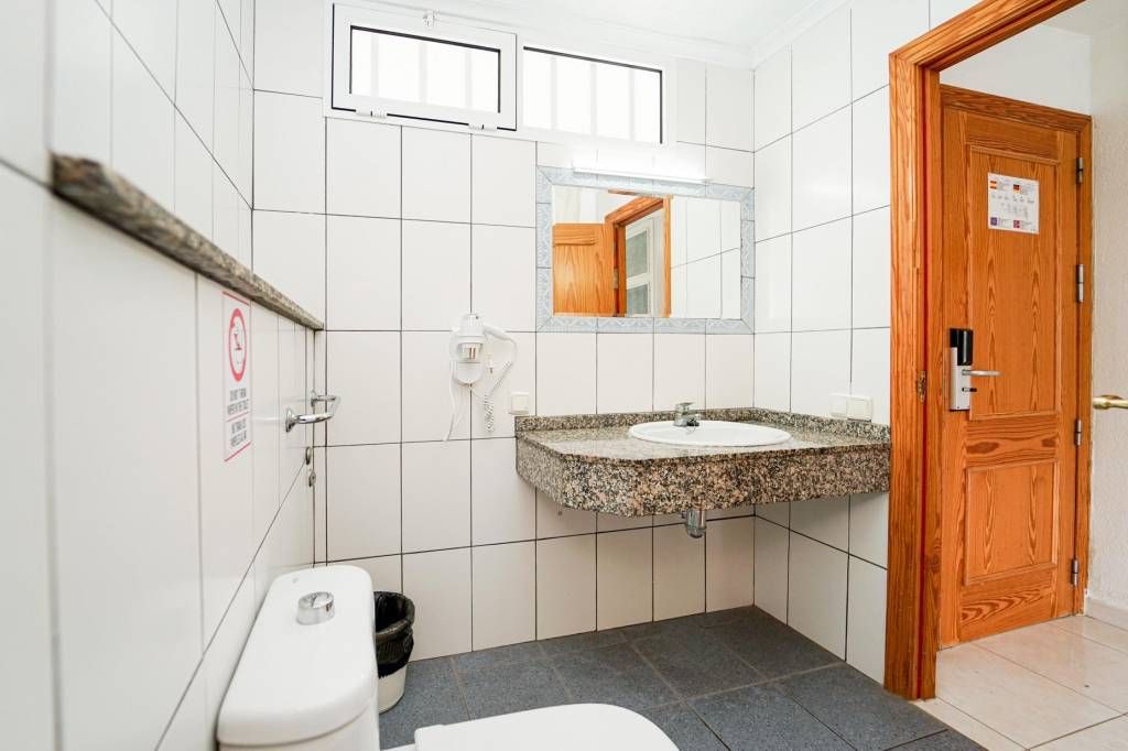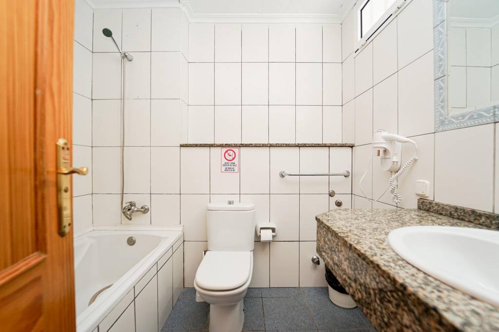Baño, salón-comedor-dormitorio, hall y terraza con vistas al mar.