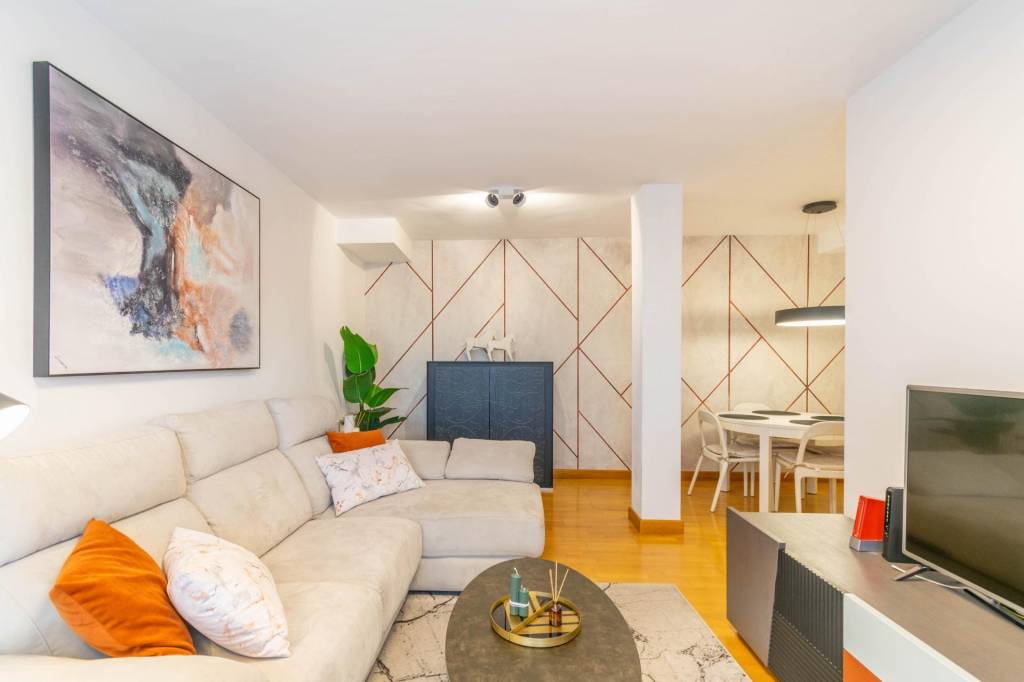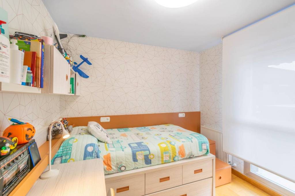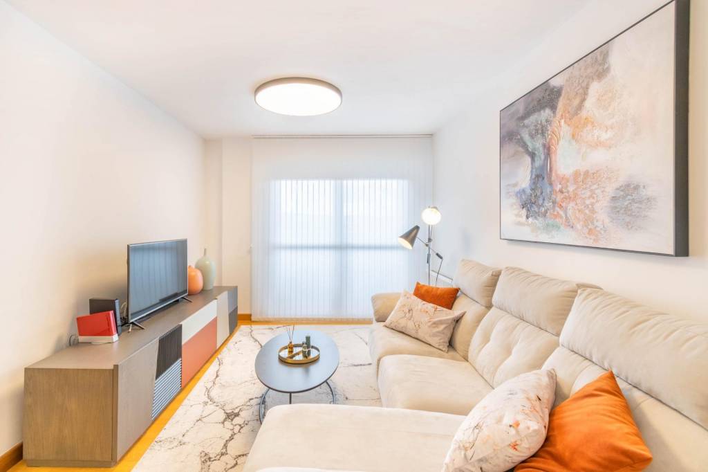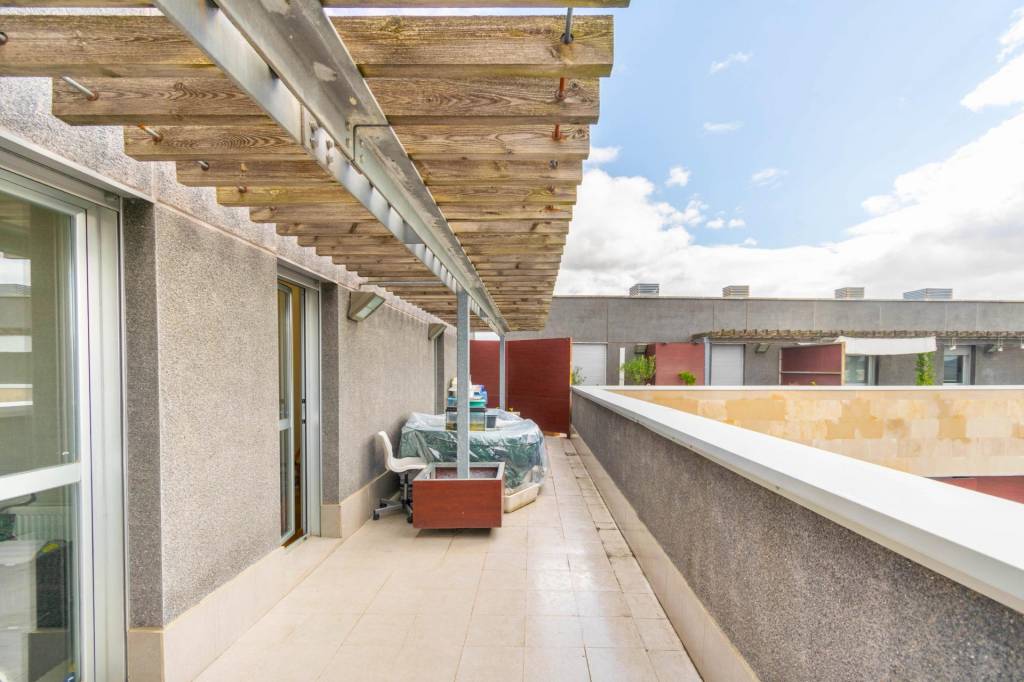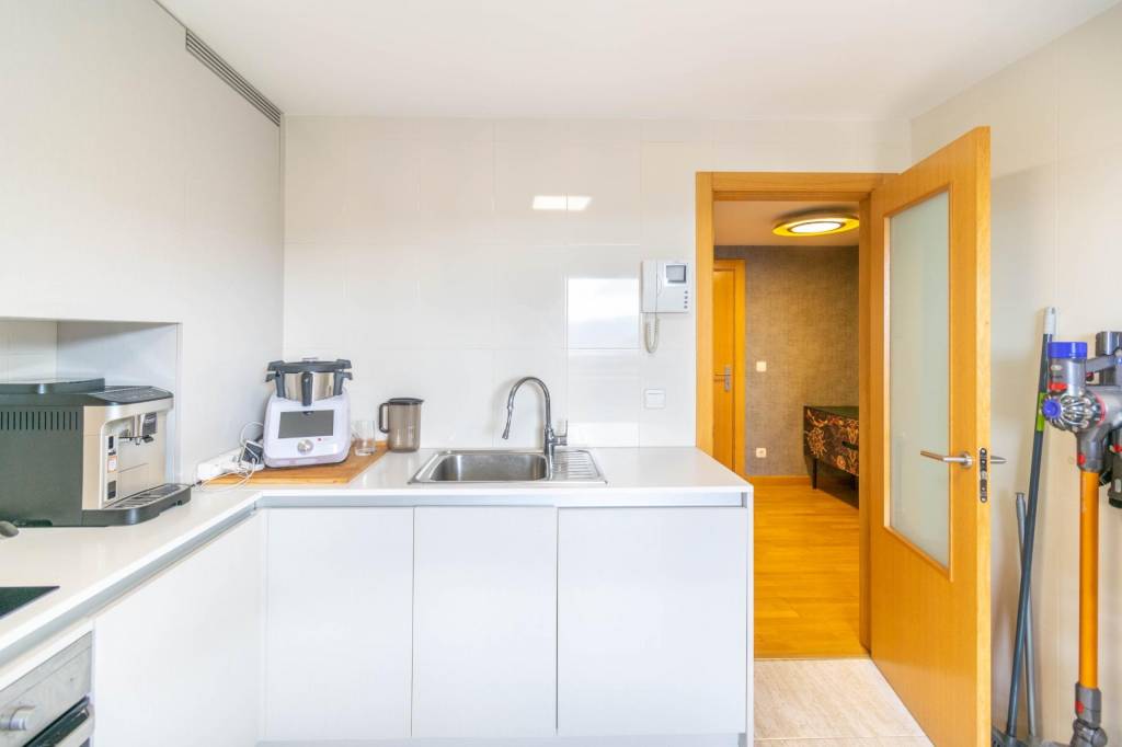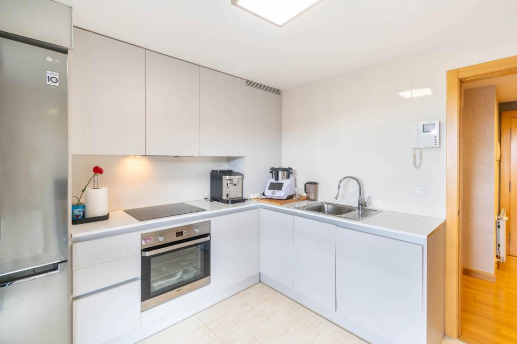 El salón-comedor, también con salida a la terraza, es amplio y acogedor, con ventanal que permite la entrada de luz natural durante todo el día. La cocina, funcional y bien equipada, se integra perfectamente con el estilo de la vivienda.