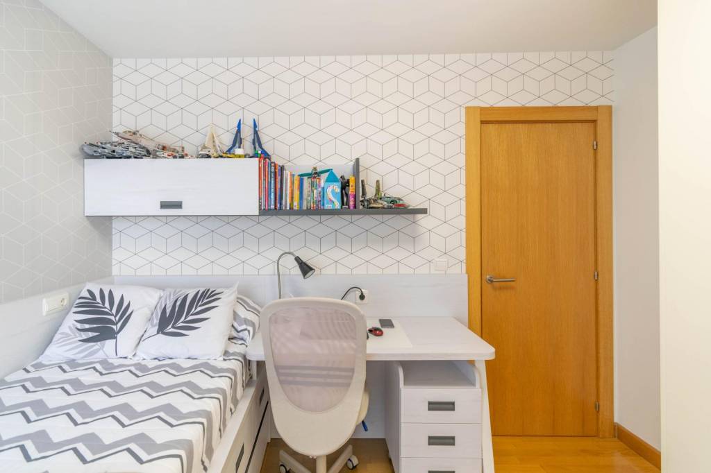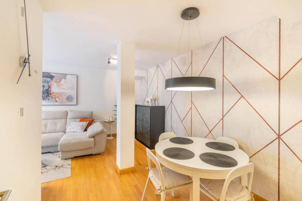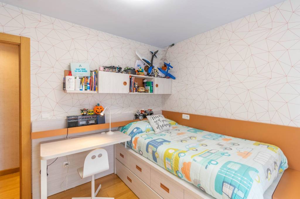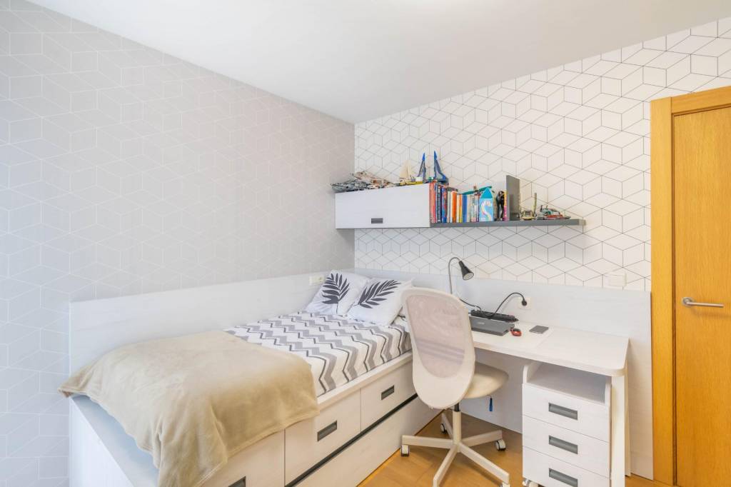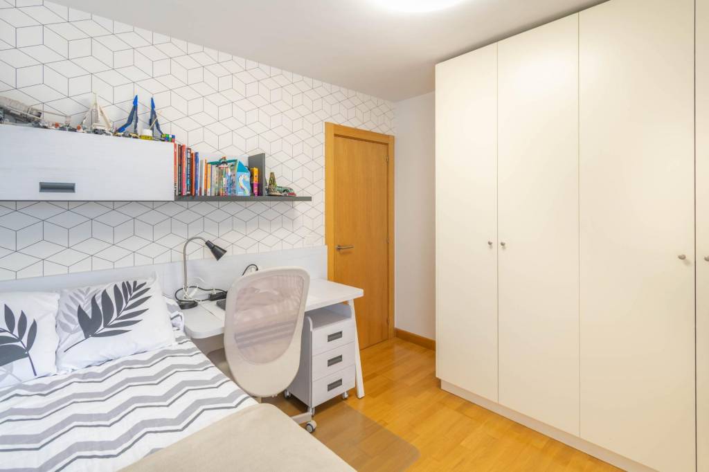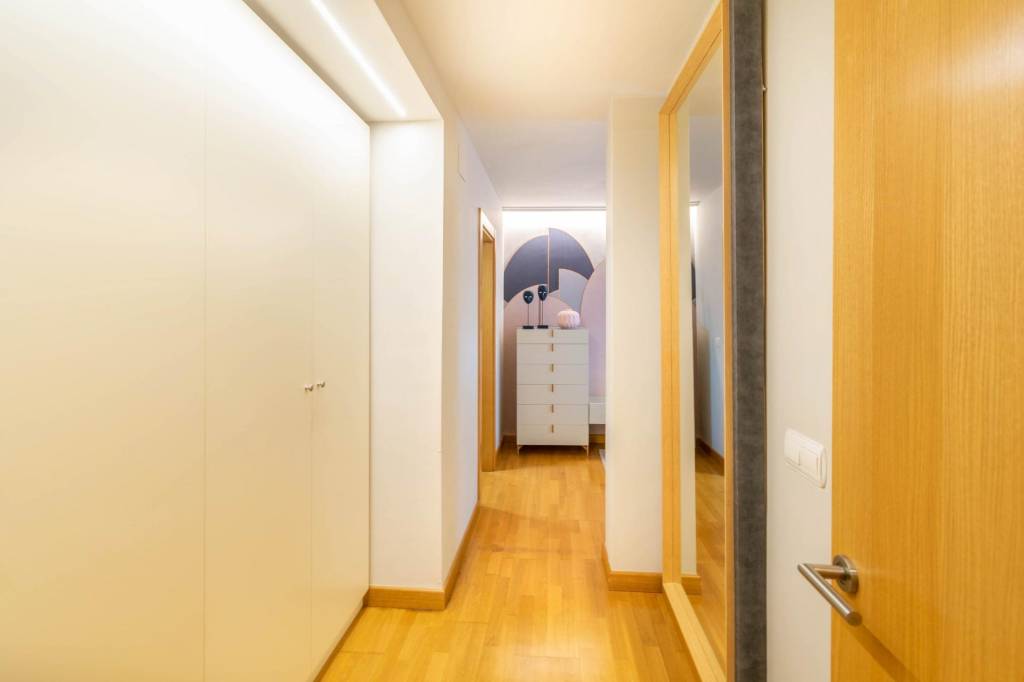El salón-comedor, también con salida a la terraza, es amplio y acogedor, con ventanal que permite la entrada de luz natural durante todo el día. La cocina, funcional y bien equipada, se integra perfectamente con el estilo de la vivienda.