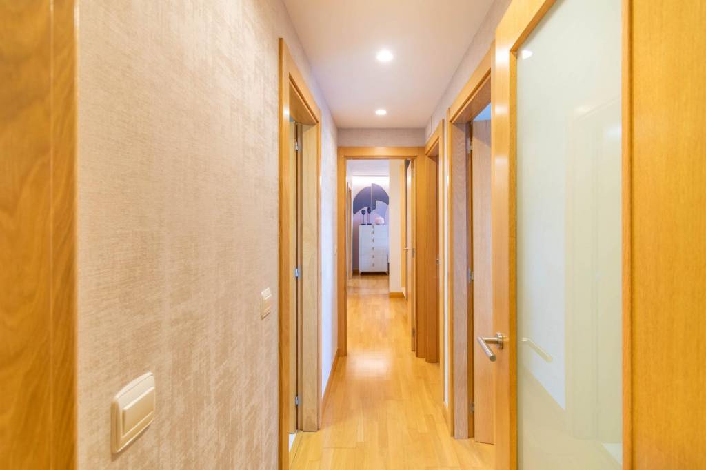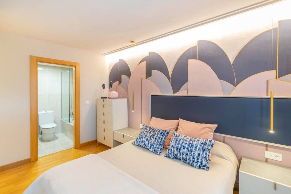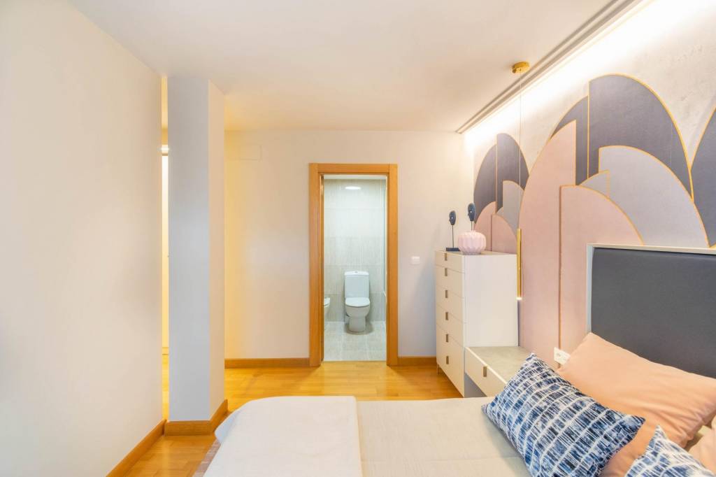 La vivienda dispone de tres dormitorios, todos ellos con acceso directo a la amplia terraza de 35 metros cuadrados y con vistas abiertas al paisaje. El dormitorio principal cuenta con un baño en suite, creando un espacio íntimo y cómodo para el descanso. Los otros dos dormitorios también disfrutan de gran luminosidad y vistas despejadas, perfectos para familia, invitados o incluso como espacios de trabajo.