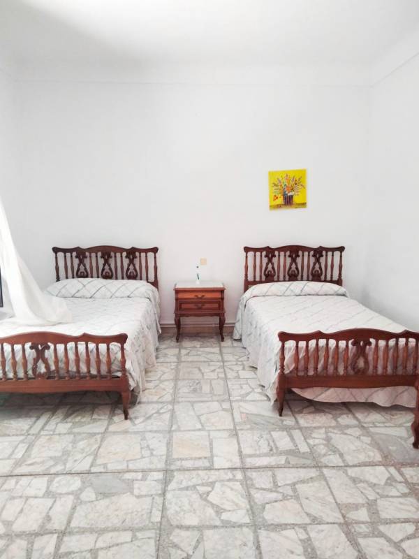 En la planta baja de la vivienda encontrarás una amplía entrada y distribuidor, salón, dos dormitorios, baño completo con ducha, una patio cubierto mediante el que se accede a la amplia cocina con suficiente espacio para disponer un comedor y cuarto de estar en ella, y escaleras para acceder al trastero de la planta superior, así como la salida al patio de la vivienda en el que encontramos un aseo. Desde el patio podemos acceder a la calle y, como ya hemos comentado, también podemos acceder directamente al solar anexo que cuenta con salida independiente a la calle. Este solar tiene unas edificaciones usadas como almacenes, aunque la mayoría de la superficie está natural.