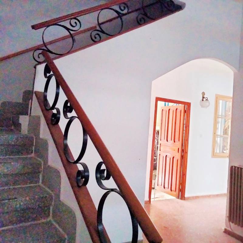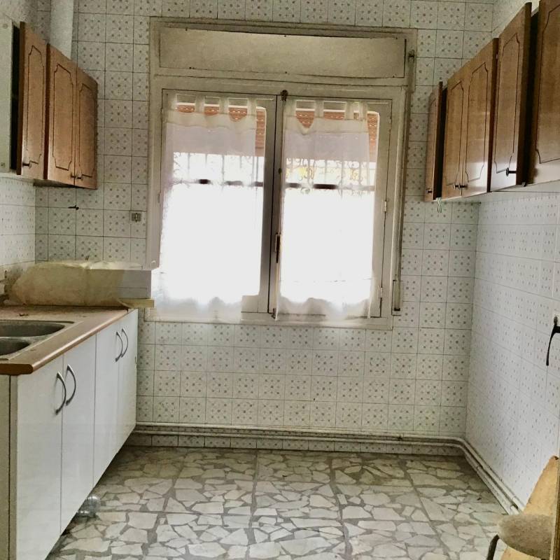 En la planta baja encontramos un amplio hall con escalera de acceso a la planta superior. Una cocina amueblada, dormitorio y aseo. Salida a la gran portada en la que encontramos el cuarto de la caldera y el acceso al sótano. En esta planta podemos actualizar cuatro dormitorios que se encuentran en estado original.