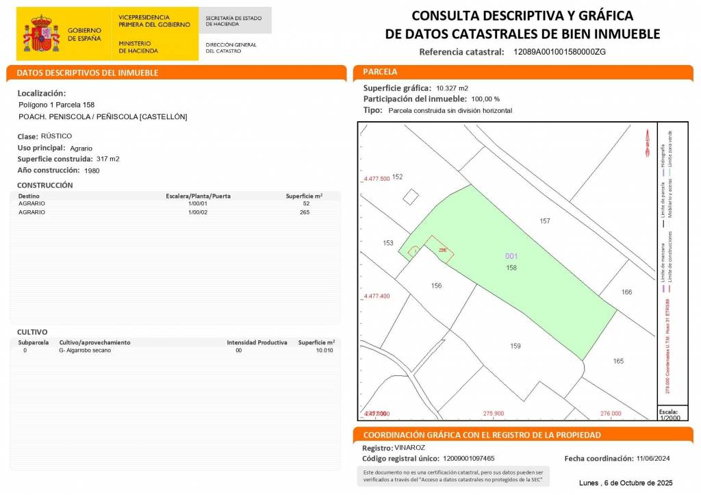 Terreno rústico en venta en Peñíscola – 10.327 m² con 317 m² construidos