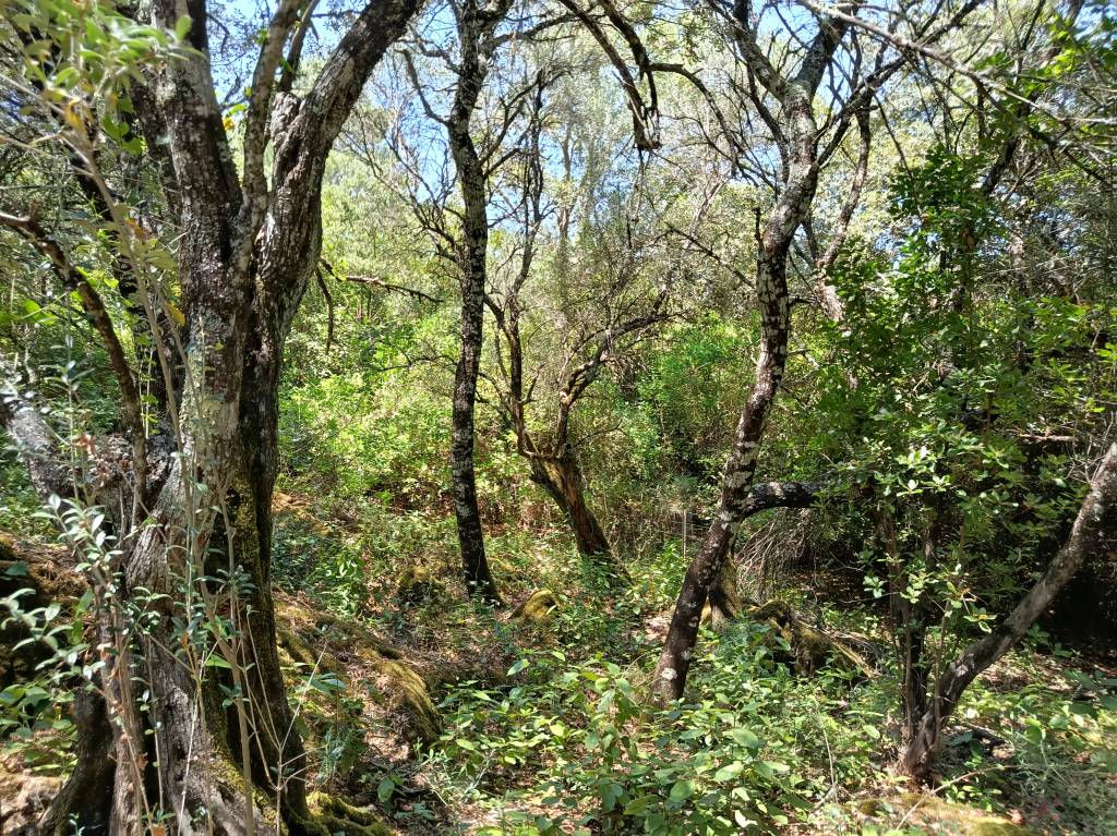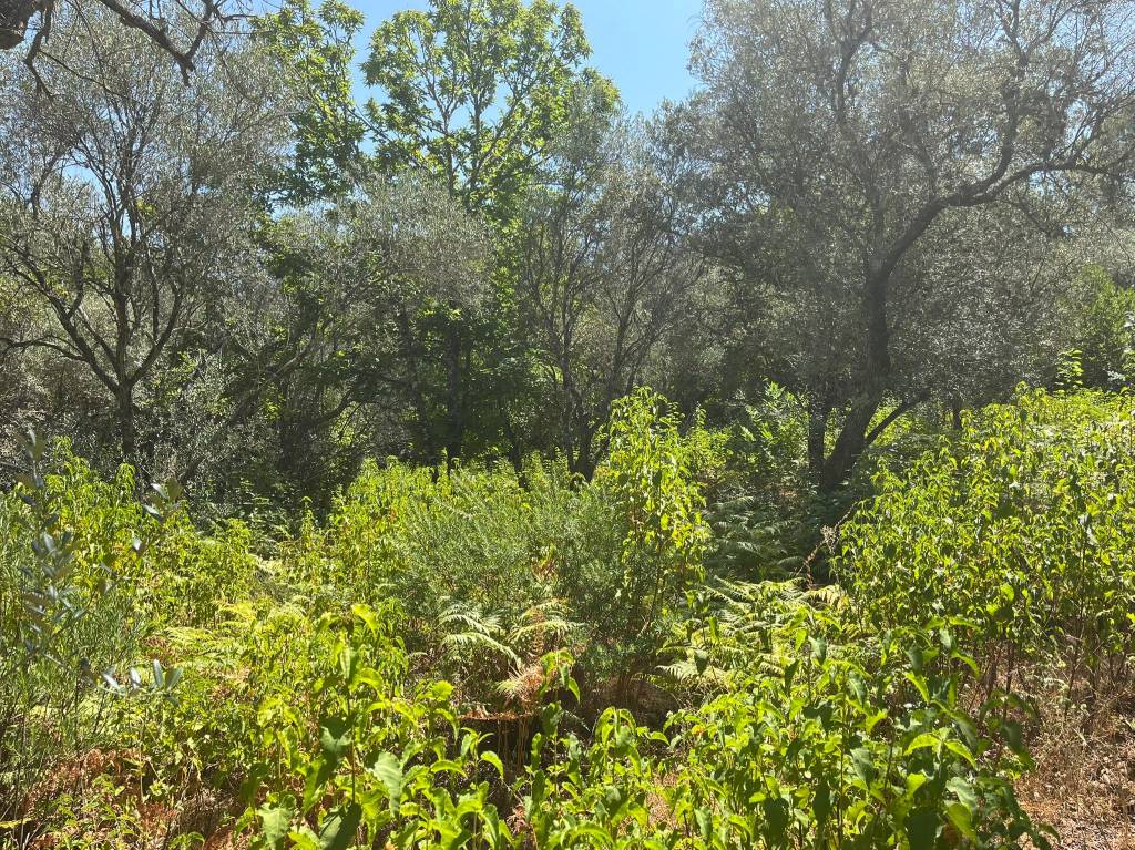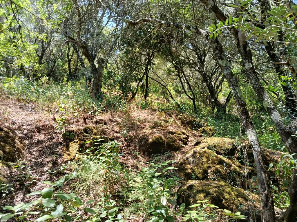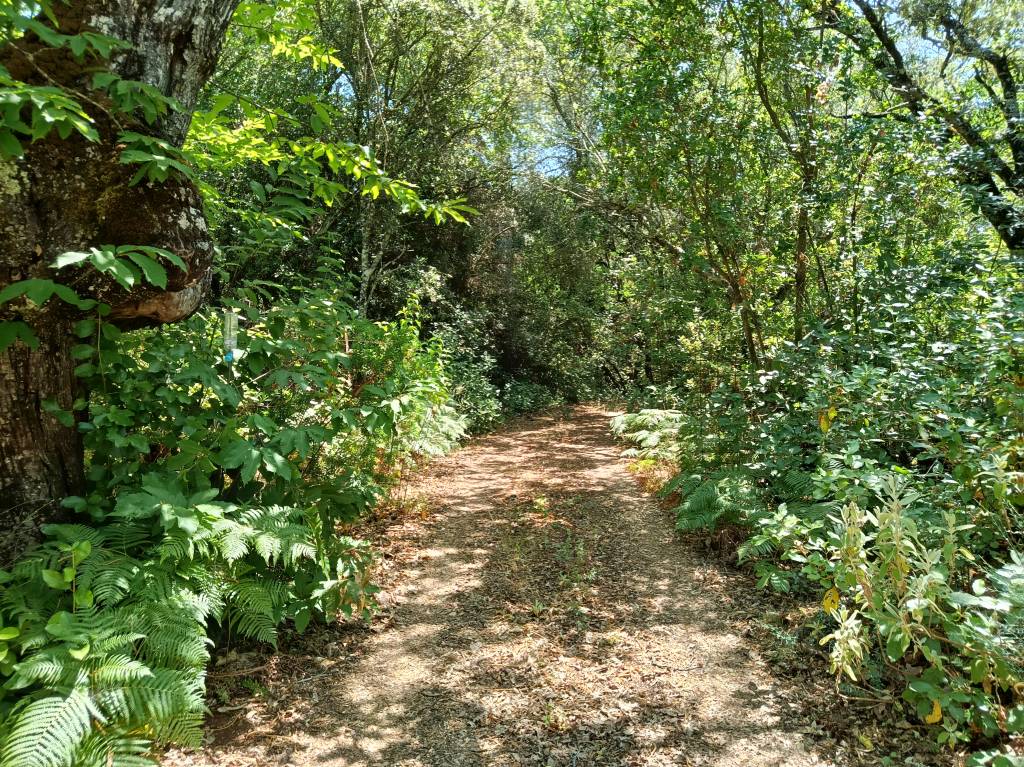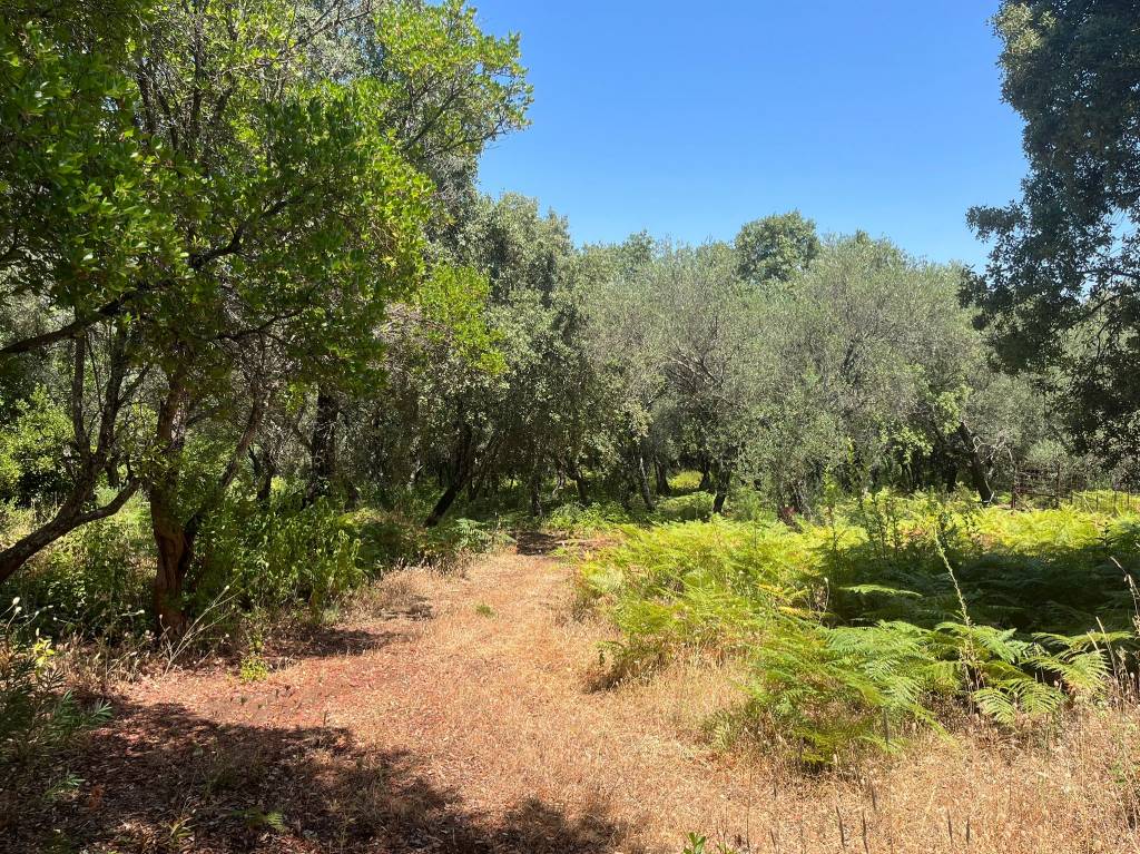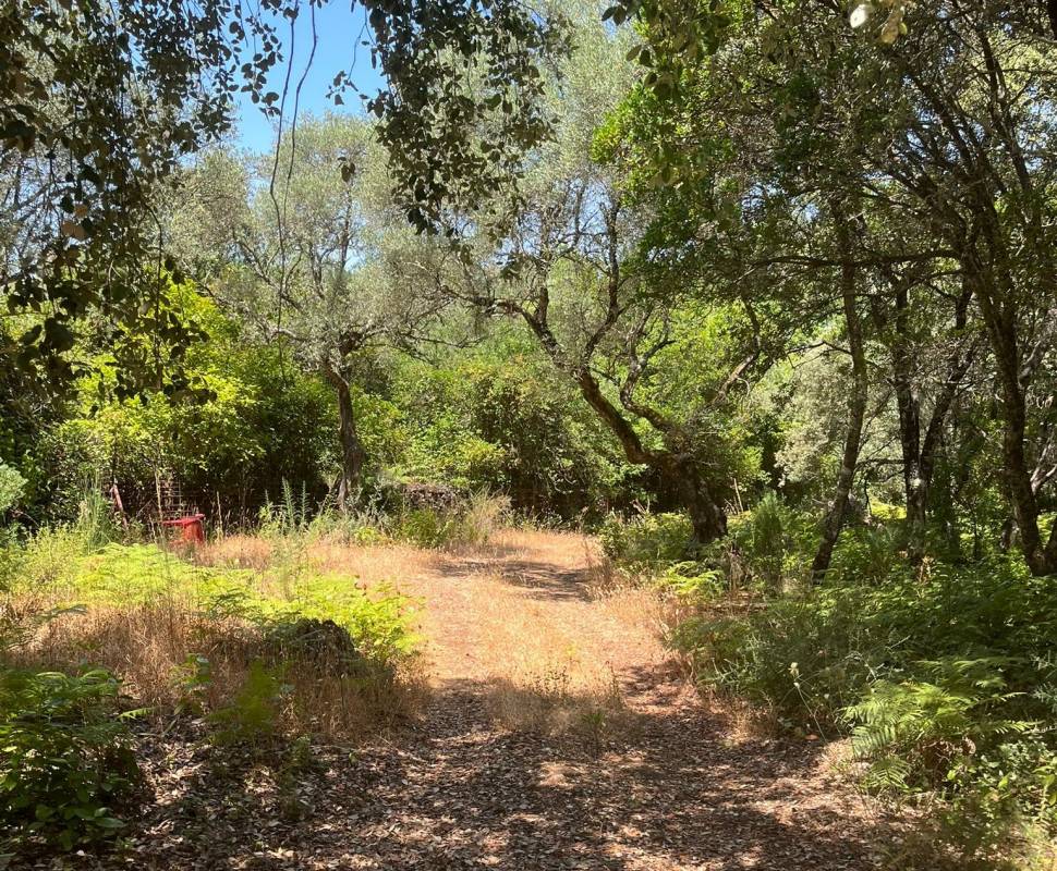 La finca ofrece una mezcla única de paisajes: sombra natural de castaños, encinas y alcornoques, senderos, fauna autóctona y un microclima ideal para huertos ecológicos.