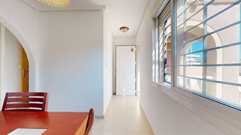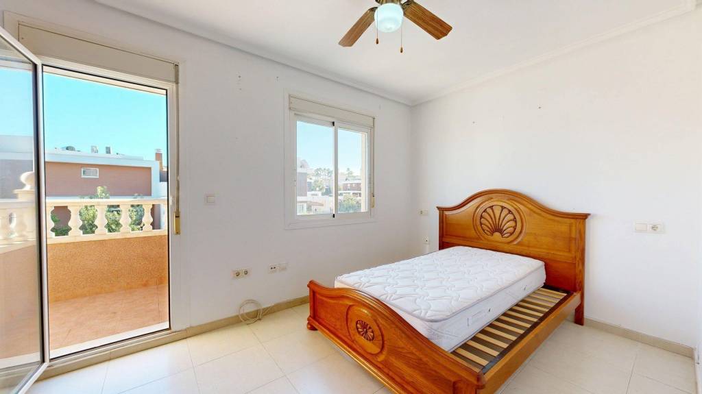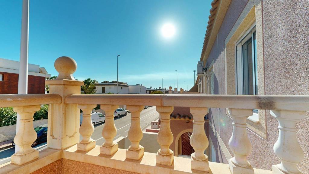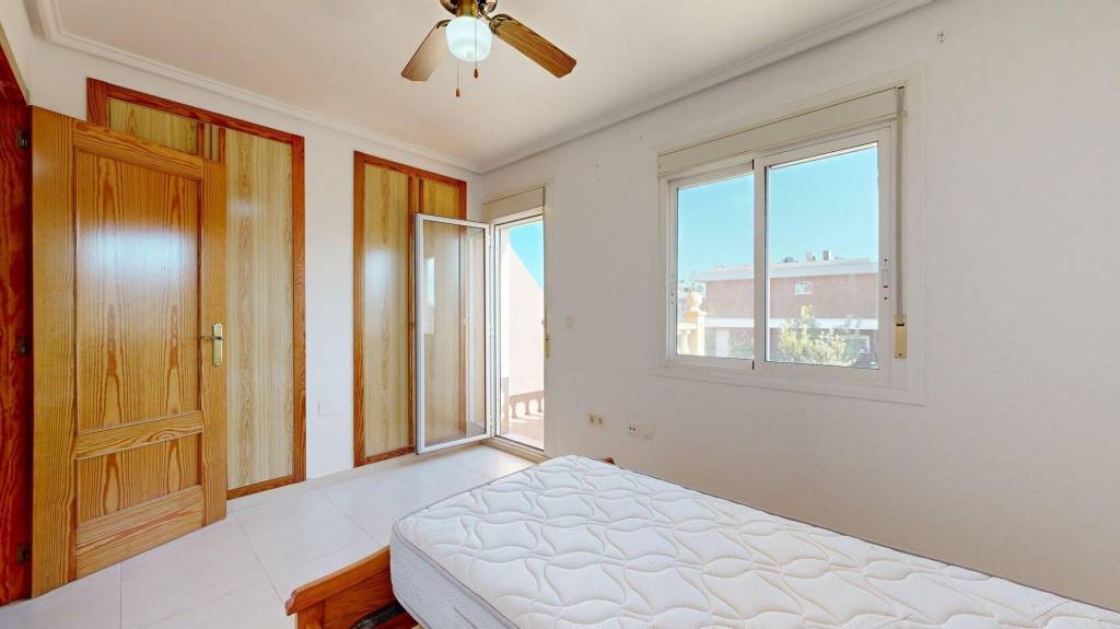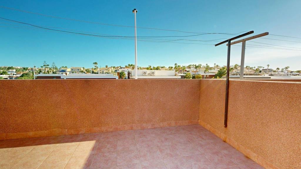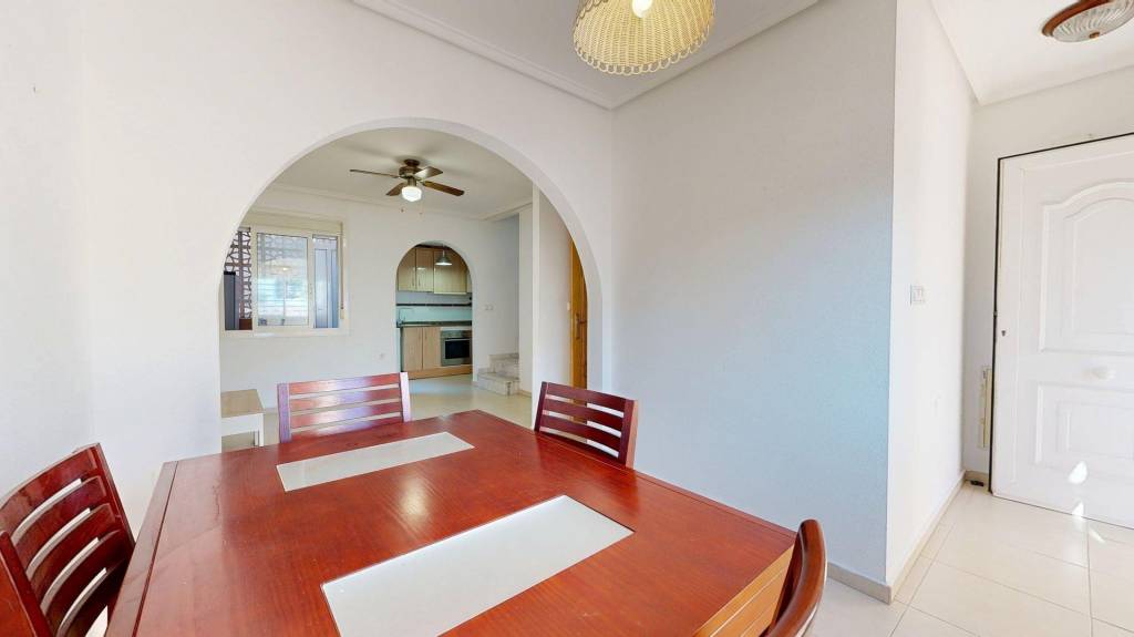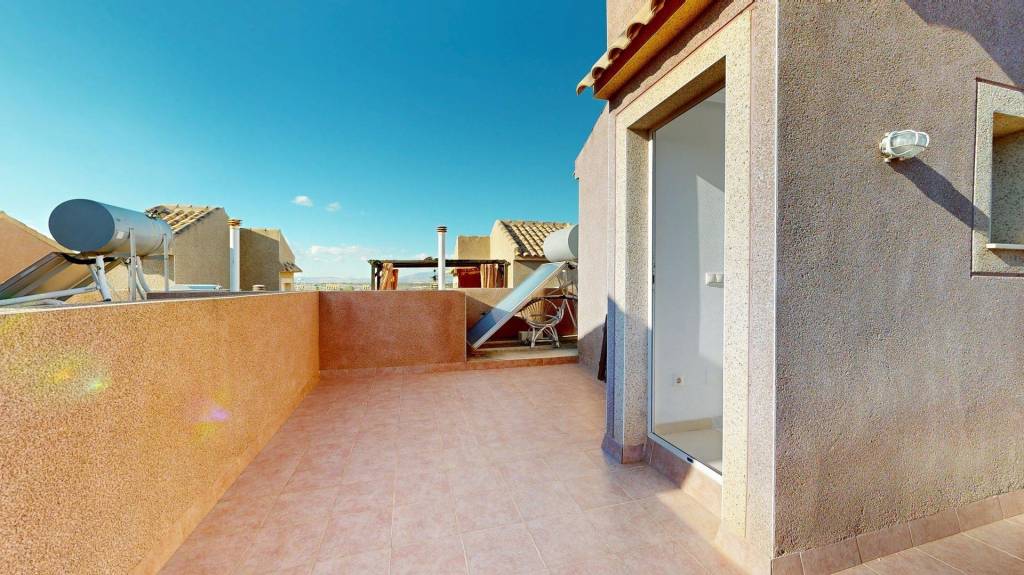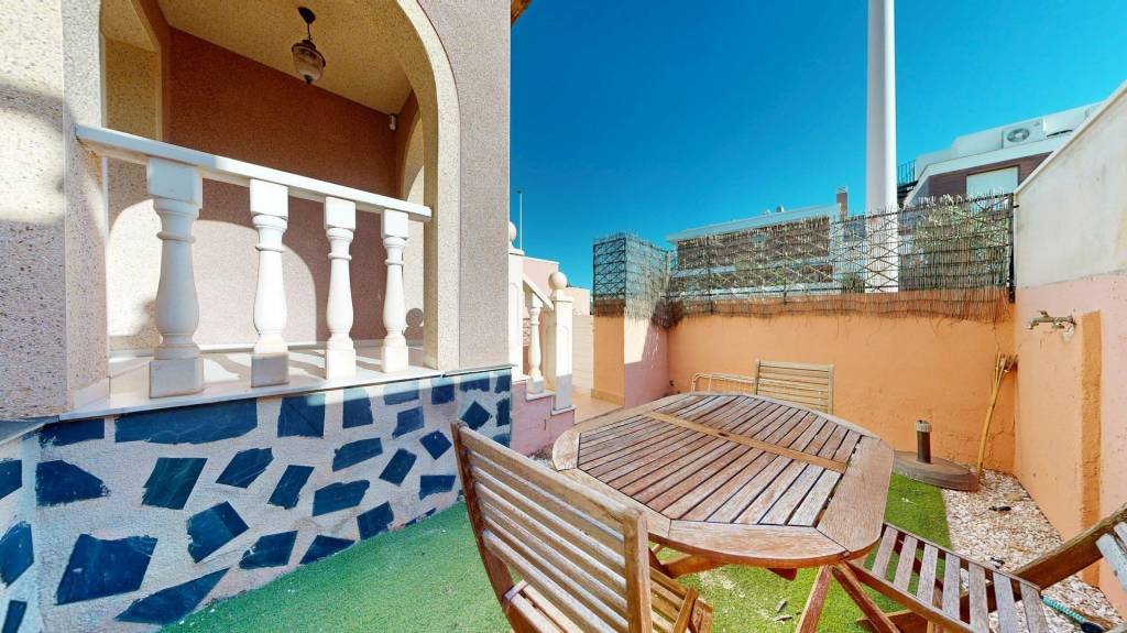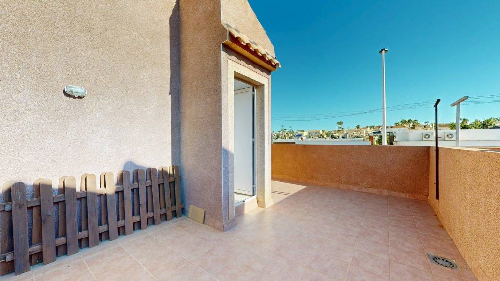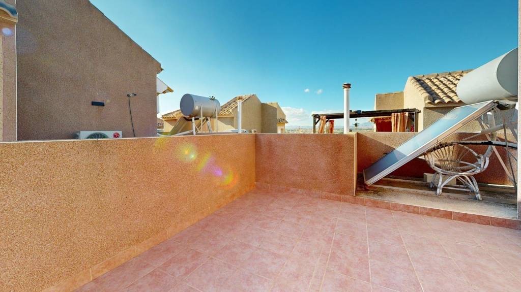 El bungalow está distribuido en tres plantas se encuentra en buen estado. A la planta principal se acceso desde un patio, perfecto para disfrutar de tu café matutino o agradables momentos de familia y amigos, un luminoso salón -comedor, cocina con espacio de tendedero o usos varios, baño completo y un espacio de almacenaje bajo la escalera. En la primera planta accediendo por bonita escalera de mármol, 2 dormitorios con armarios empotrados, una terraza que se accede desde el dormitorio principal y otro baño completo. Y en la tercera planta maravillosa azotea de donde podrá disfrutar de una espectaculares vistas totalmente despejadas.
