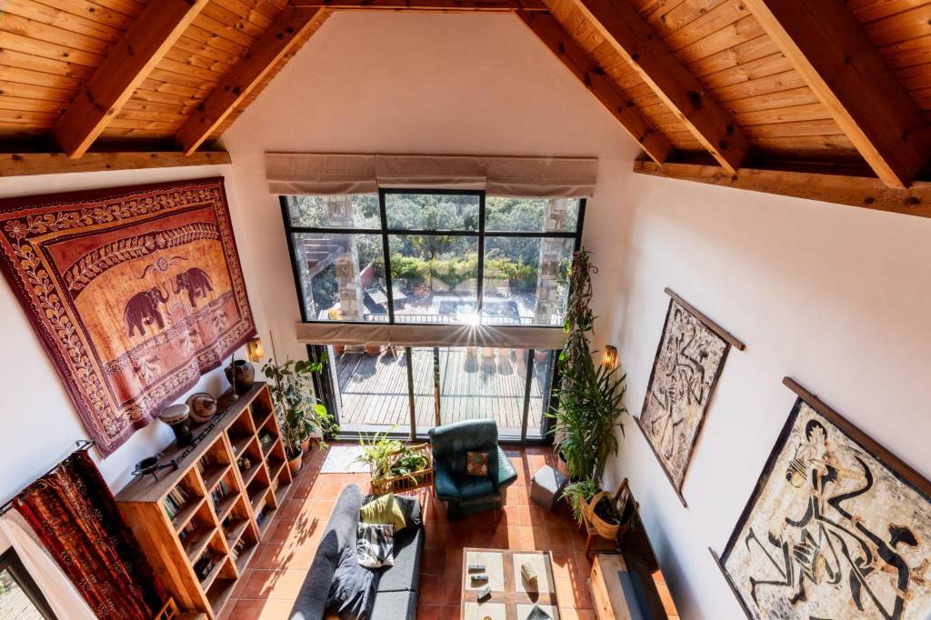 Al cruzar el umbral, el espacio se transforma. El corazón de la casa es un impresionante salón principal que se eleva hasta los siete metros de altura. Más que una estancia, es una catedral de luz y aire, donde la arquitectura enmarca las vistas a la Sierra de Guadarrama y la luz natural se convierte en un elemento arquitectónico más. Es un espacio diseñado no solo para vivir, sino para inspirar.