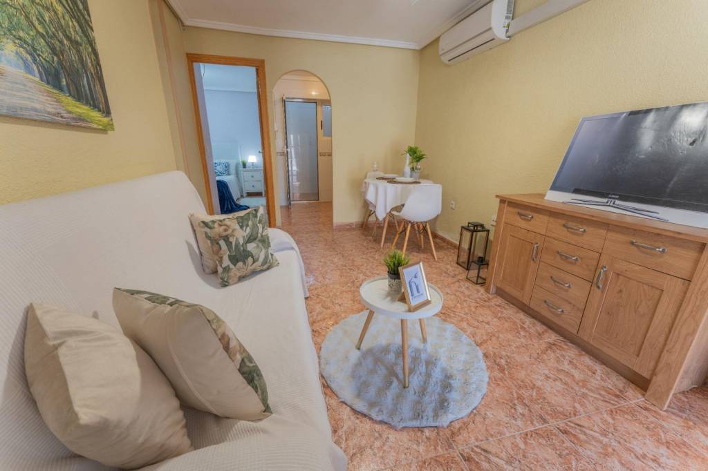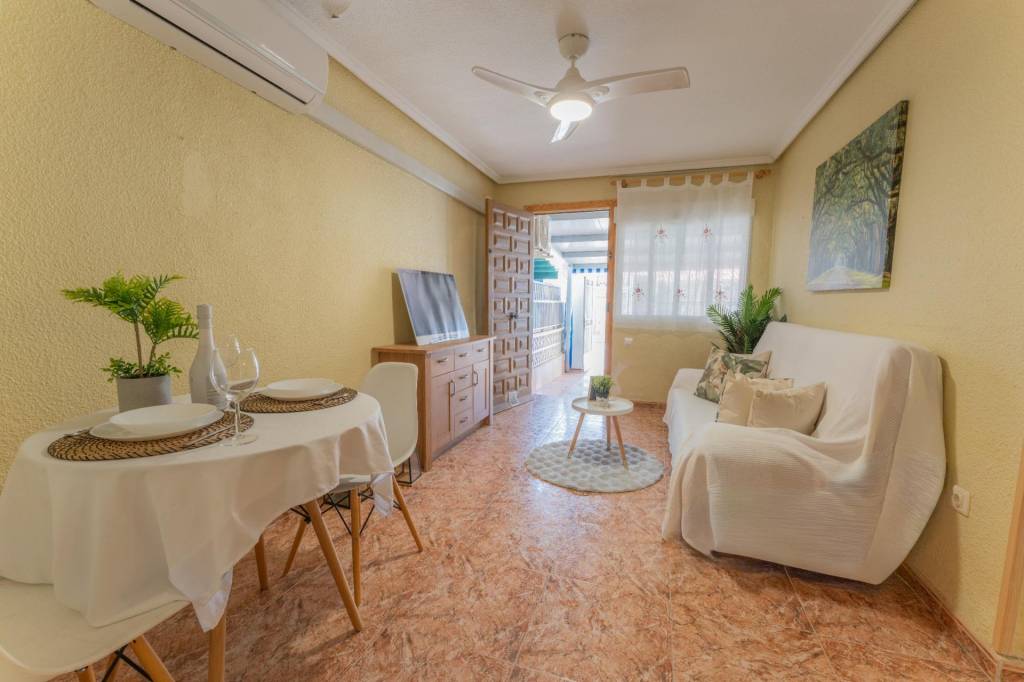 Preciosa planta baja muy luminosa, ubicada en una zona residencial y tranquila, con vecinos todo el año y aparcamiento en la puerta.