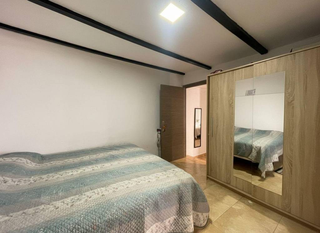 La vivienda cuenta con tres habitaciones: una doble y dos sencillas, todas distribuidas alrededor del patio interior trasero, aprovechando al máximo la luz natural que ilumina cada estancia y crea un ambiente acogedor. El baño, reformado recientemente, ofrece un estilo moderno con un amplio plato de ducha, práctico y elegante.