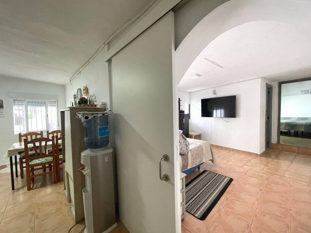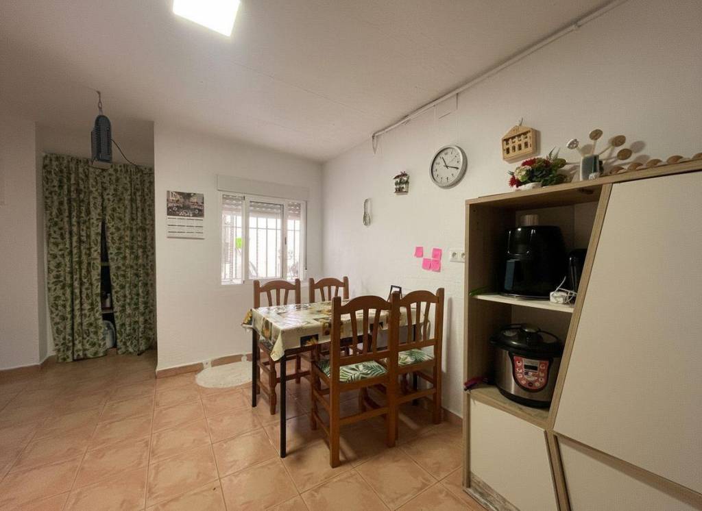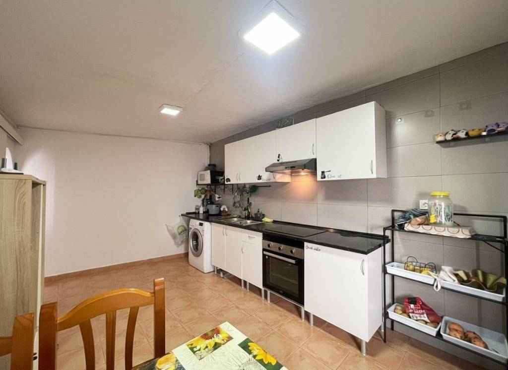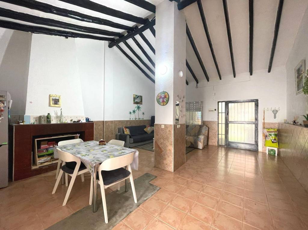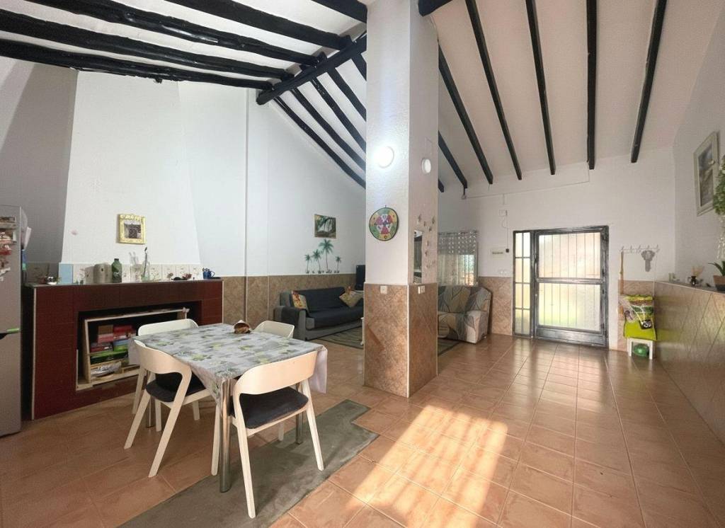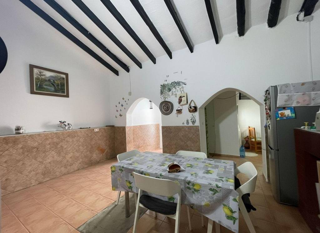 Desde el patio accedemos al amplio salón-comedor, un espacio protagonista donde destacan los techos altos y las vigas de madera decorativas, que aportan calidez, robustez y una estética tradicional que combina perfectamente con el estilo renovado del interior. La cocina, de buen tamaño, está reformada y equipada, lista para disfrutarla sin necesidad de realizar ninguna mejora.