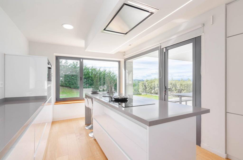 • Cocina de diseño con isla central, perfectamente integrada en la zona de día.