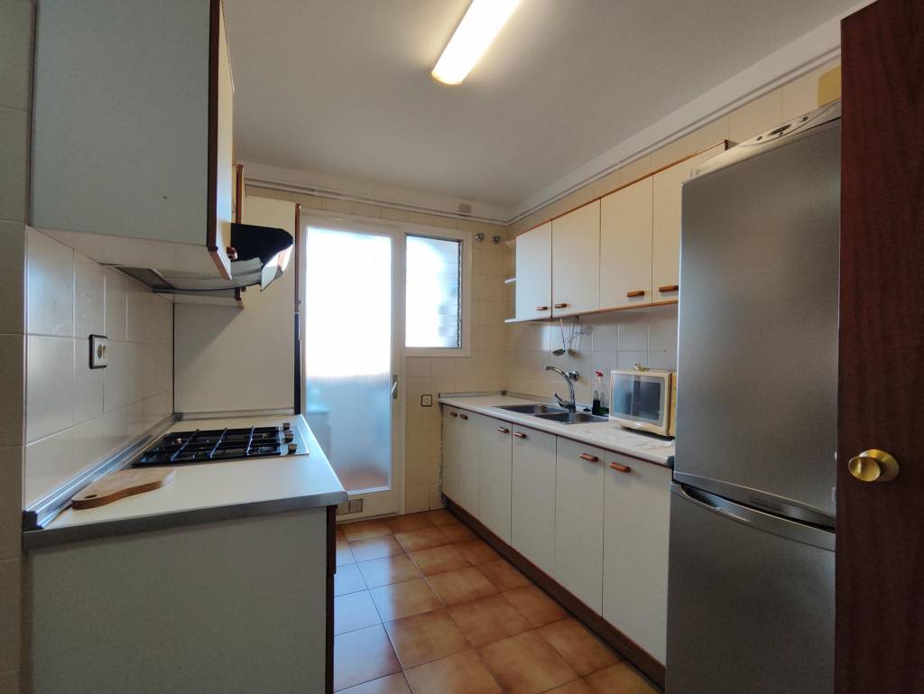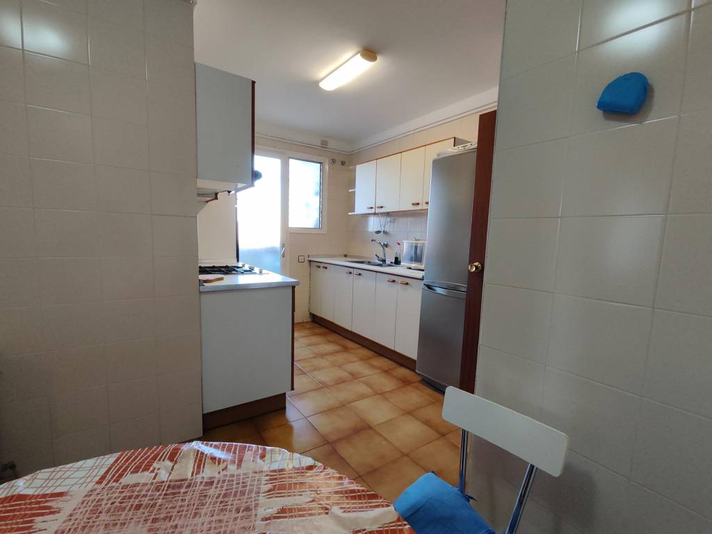 El gran comedor se convierte en el corazón de la vivienda, con salida directa a un agradable balcón con toldo, ideal para disfrutar del aire libre en cualquier época del año. La cocina es amplia y práctica, con acceso a un lavadero independiente, pensada para el uso diario y con mucho espacio de almacenaje.