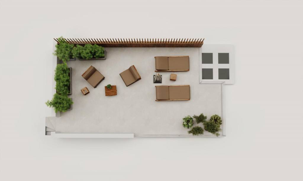 En la parte superior encontramos un solárium privado panorámico, perfecto para crear una zona chill-out, comedor exterior o espacio de relax con vistas abiertas.