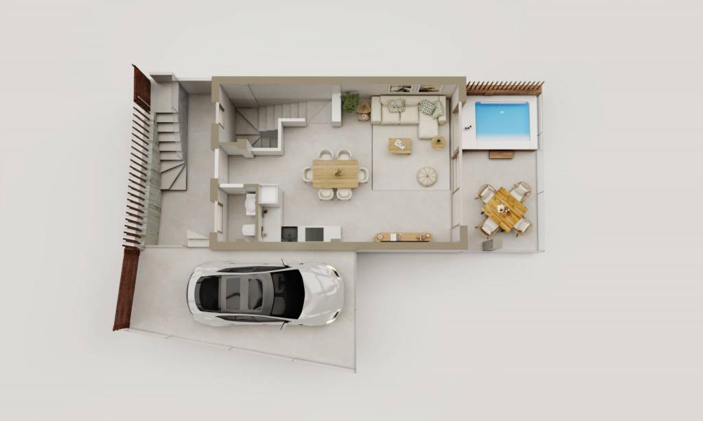 La propiedad ha sido diseñada siguiendo un concepto de arquitectura moderna, luminosa y funcional, donde cada espacio maximiza la entrada de luz natural y la conexión entre interior y exterior.