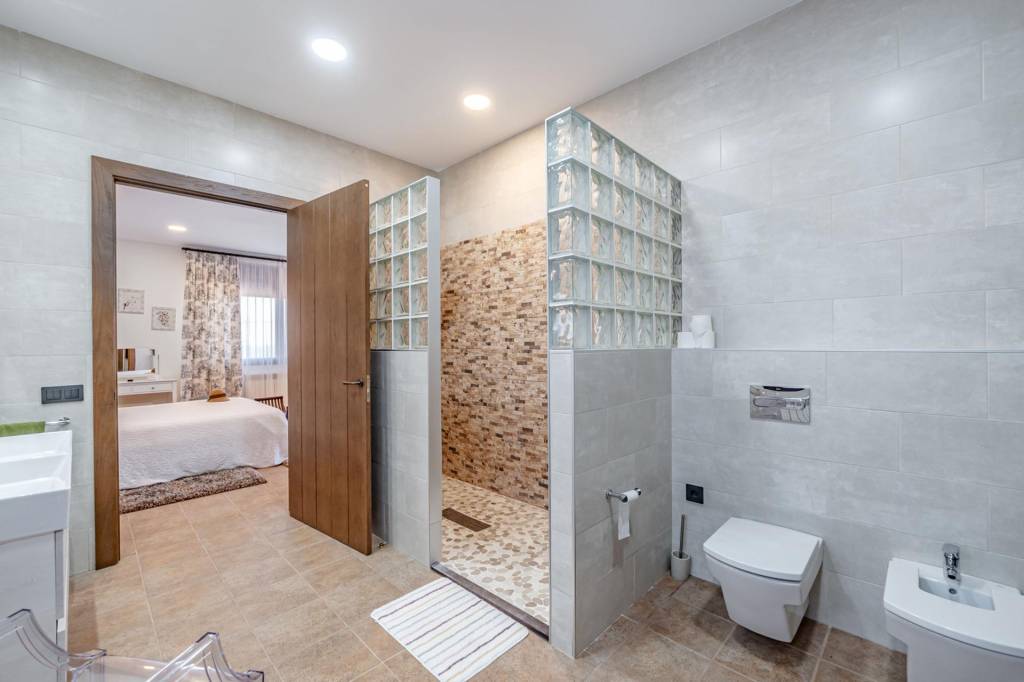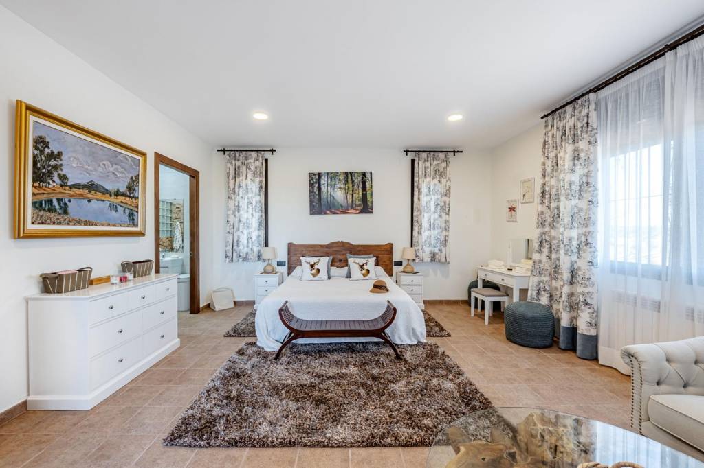 Desde el salón comedor, una ancha escalera nos lleva a la segunda planta donde tenemos la zona del dormitorio principal. Al coronar, un hall de gran amplitud nos lleva por la derecha a la zona de descanso con baño en suite y terraza con unas maravillosas vistas a la finca y por la izquierda a una zona de despacho con una segunda terraza también con vistas.