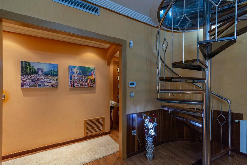 El interior está diseñado pensando en cada detalle: suelos nobles en parquet macizo, puertas macizas realizadas en madera haya y aire acondicionado por conductos garantizan un ambiente acogedor todo el año. Además, te sorprenderá la buhardilla totalmente equipada que incluye dormitorios extra, vestidor espacioso así como salón independiente—perfecta para adaptarse a tus necesidades familiares o laborales.