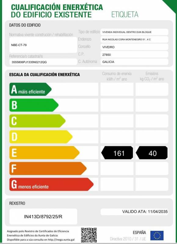 • Impuesto sobre Transmisiones Patrimoniales (ITP): Se aplicará el tipo impositivo vigente en la Comunidad Autónoma de Galicia, generalmente el 8 % (11600), sin perjuicio de tipos reducidos del 7%, 6%, 4%, 3%, aplicables según las circunstancias personales del comprador o las características del inmueble. El impuesto se devenga sobre el Valor de Referencia, Catastro o el precio de venta, aquel que resulte superior.