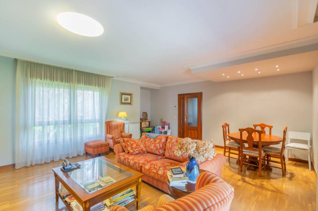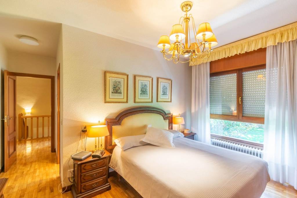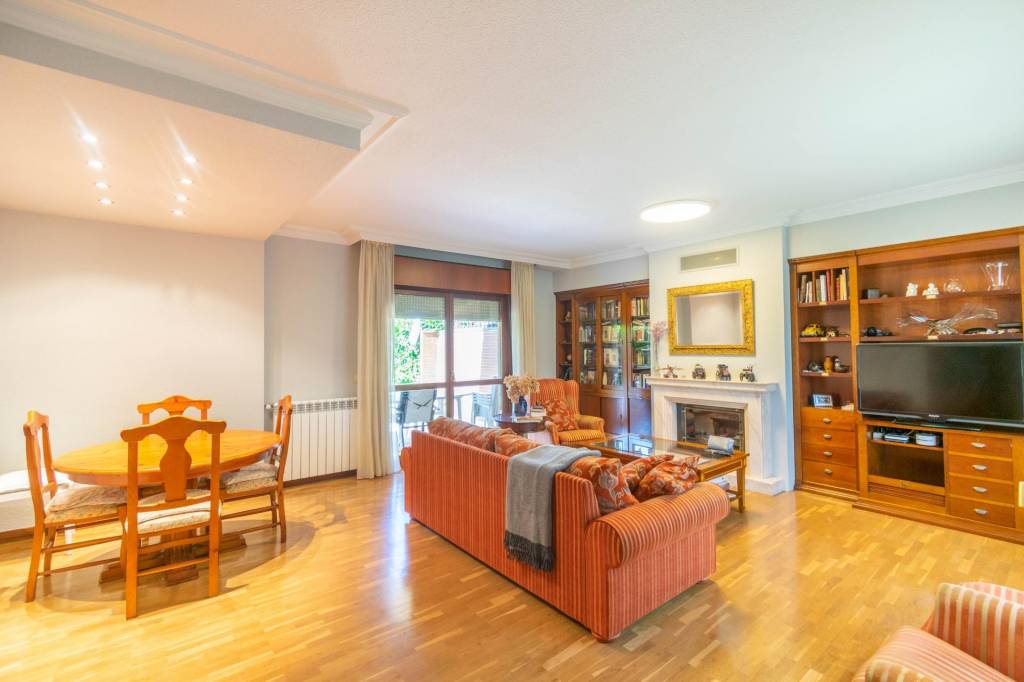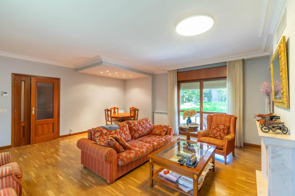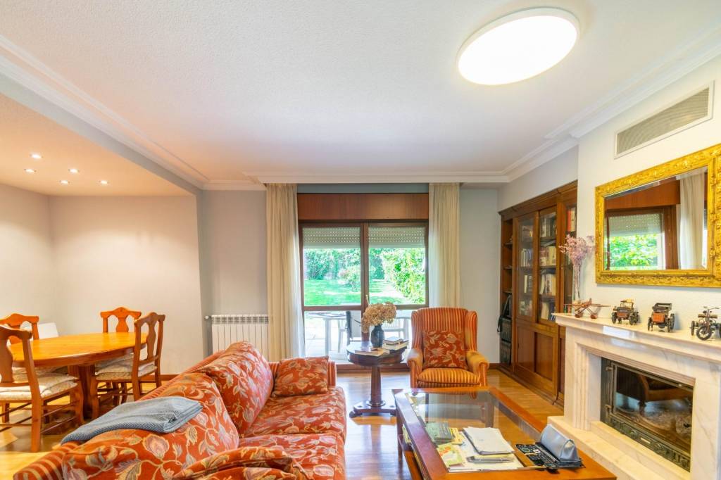 La vivienda transmite calidez y armonía. El salón se abre como el verdadero corazón de la casa: un espacio amplio y lleno de luz natural gracias a sus dos ventanales, donde la chimenea aporta ese toque acogedor que invita a disfrutar de largas tardes en familia o momentos de descanso en invierno. Uno de los ventanales conecta directamente con el jardín, integrando interior y exterior de forma natural.