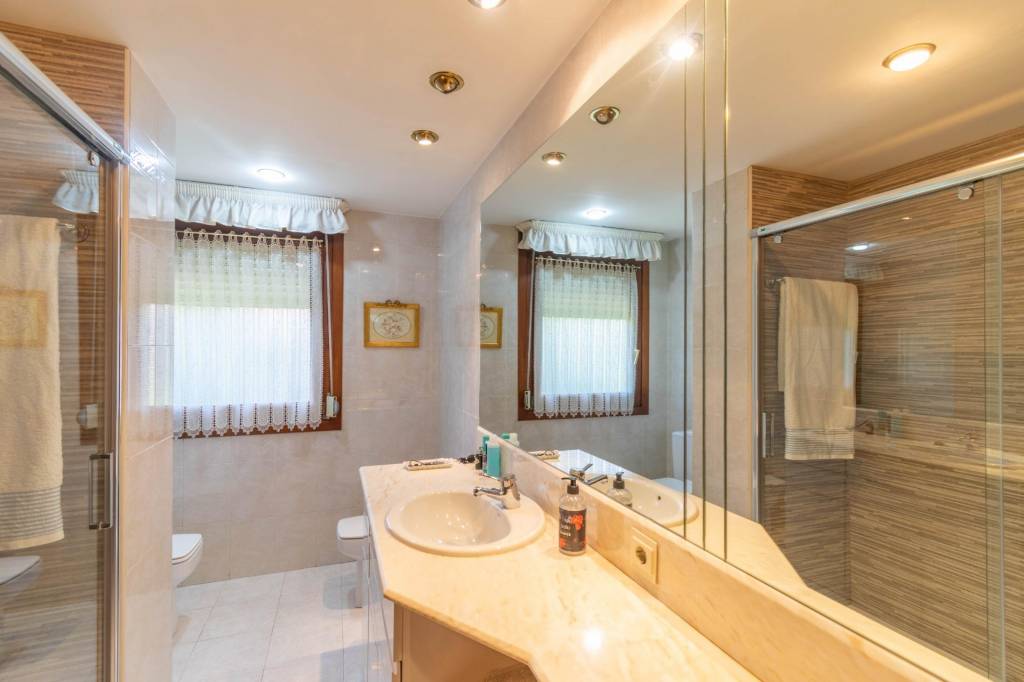 En la planta superior se encuentra la zona de descanso, compuesta por cuatro dormitorios, todos ellos con armarios empotrados, pensados para ofrecer comodidad y espacio a toda la familia. La luz natural vuelve a ser protagonista, creando estancias agradables y acogedoras. Cuenta con un espacioso baño completo con ventana, así como un baño en suite en el dormitorio principal con ducha de obra, también exterior, aportando un plus de confort y privacidad.