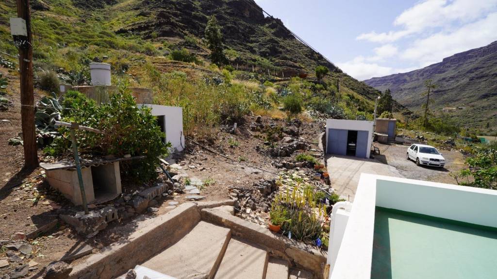 Casa con terreno en Mogán, ubicada en el barrio de Las Casillas, junto a la carretera general, a pocos minutos del puerto de Mogán y, por ende, de la playa.