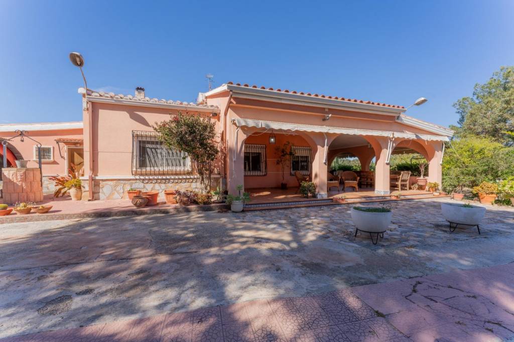 Vive la tranquilidad del campo con todas las comodidades: amplio chalet de 173 m² con piscina privada, gran parcela y múltiples construcciones auxiliares, a solo minutos de la playa, el aeropuerto y Elche.