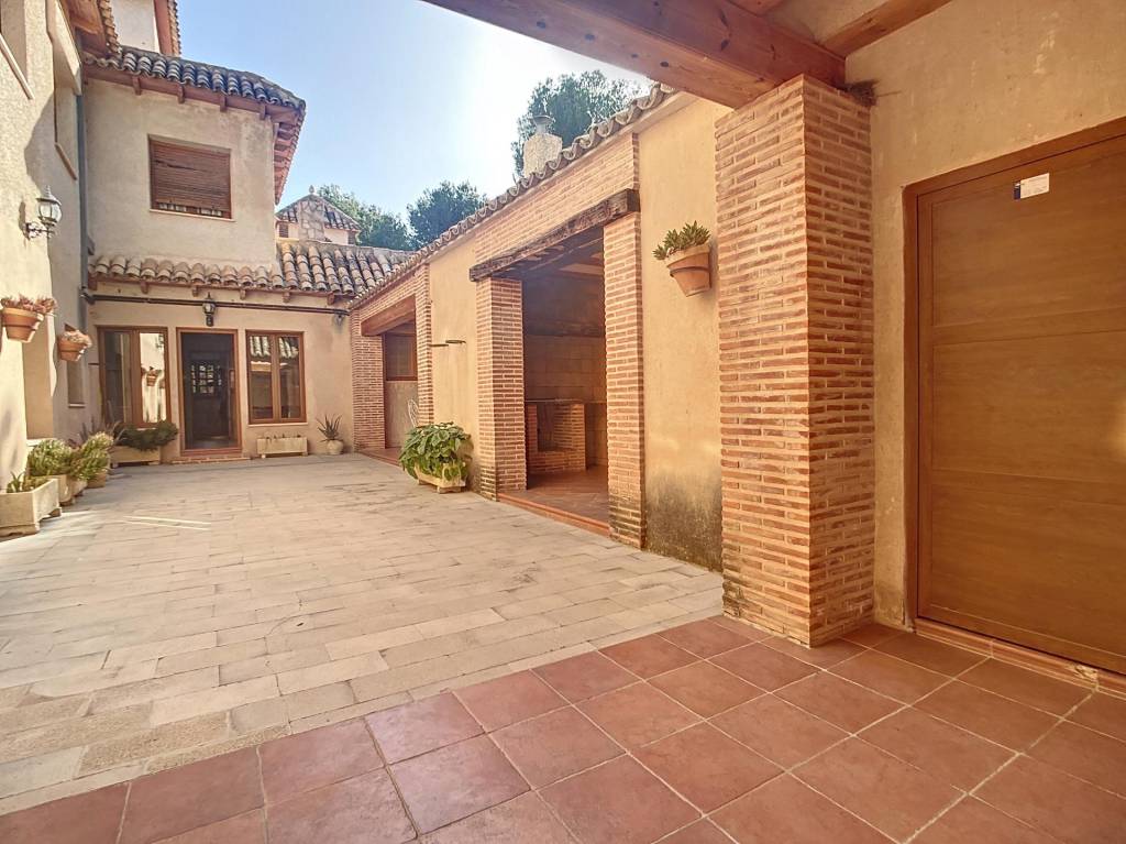 En planta baja encontrarás 493 m² construidos | 445 m² útiles con dos salones que conectan con la chimenea del comedor, 1 dormitorio con aseo con posibilidad de poder ampliarlo con una sala contigua , baño principal con ducha , cocina cerrada equipada con encimera de granito y zona de almacenaje, sala tipo restaurante para grandes reuniones con sus aseos , garaje para dos vehículos además también cuenta con un lavadero con acceso al patio central, de 39 m², hace de plaza privada , la cocina exterior dispone de barbacoa de 11 m² y su terraza de 10 m² techada , amplia despensa independiente además de un pequeño cuarto trastero .