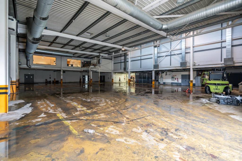 La propiedad cuenta con una superficie construida de 4.000 metros cuadrados sobre una parcela de 30.000 metros, lo que permite una operativa cómoda tanto para vehículos pesados como para turismos, con amplias zonas de aparcamiento, parte de ellas cubiertas. La nave dispone de cinco portones y dos puertos de carga que facilitan la logística diaria. Su interior está distribuido en tres grandes espacios totalmente diáfanos, con zonas que alcanzan alturas superiores a los quince metros, lo que permite un gran aprovechamiento del volumen disponible para almacenamiento o maquinaria de gran formato.