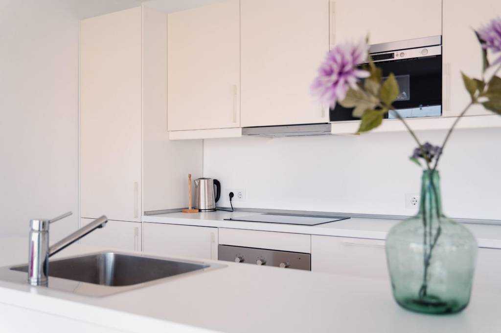 En su interior, los dos niveles se comunican por una puerta interna, permitiendo unificar o separar la vivienda. Cada planta alberga un salón-comedor diáfano con cocina americana y chimenea de gas, además de dos dormitorios dobles con baño en suite. Un aseo de cortesía y sendas salas técnicas completan la distribución.