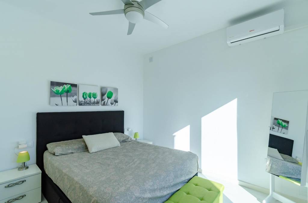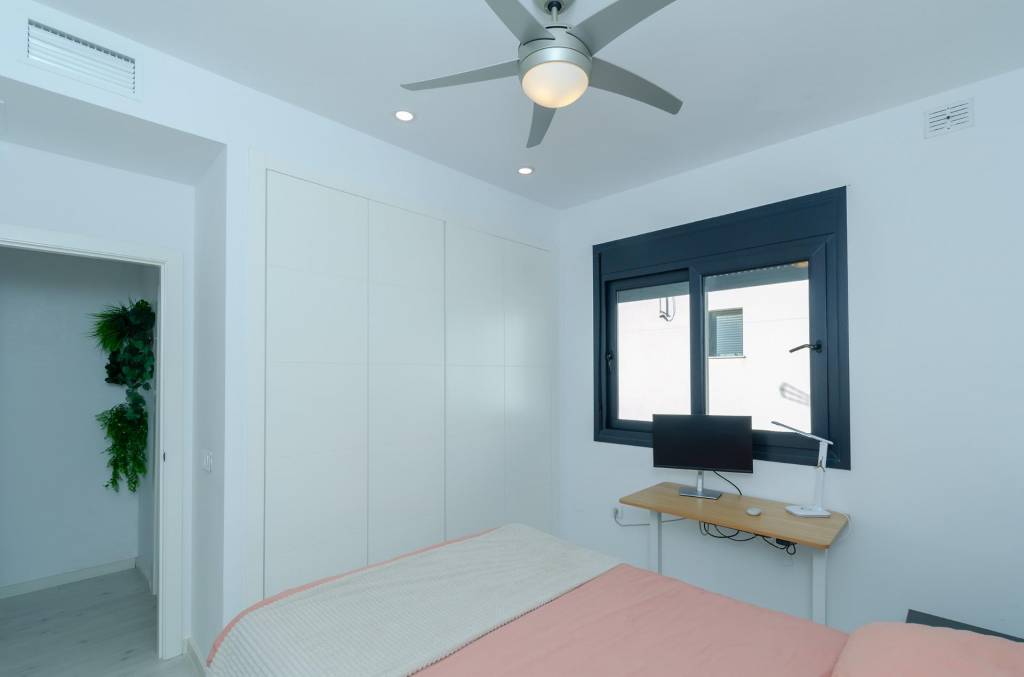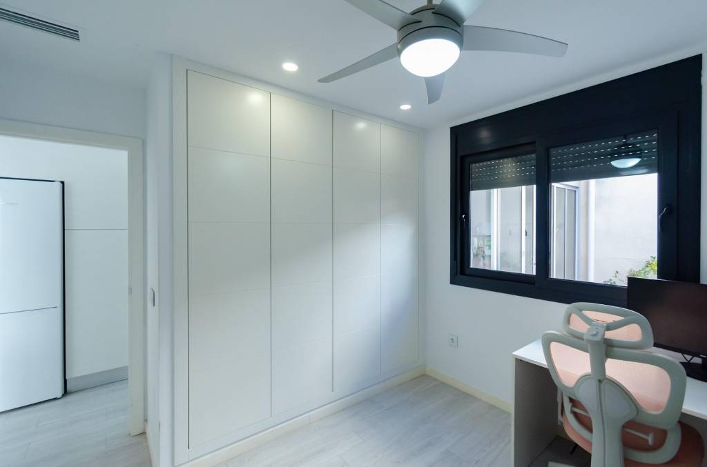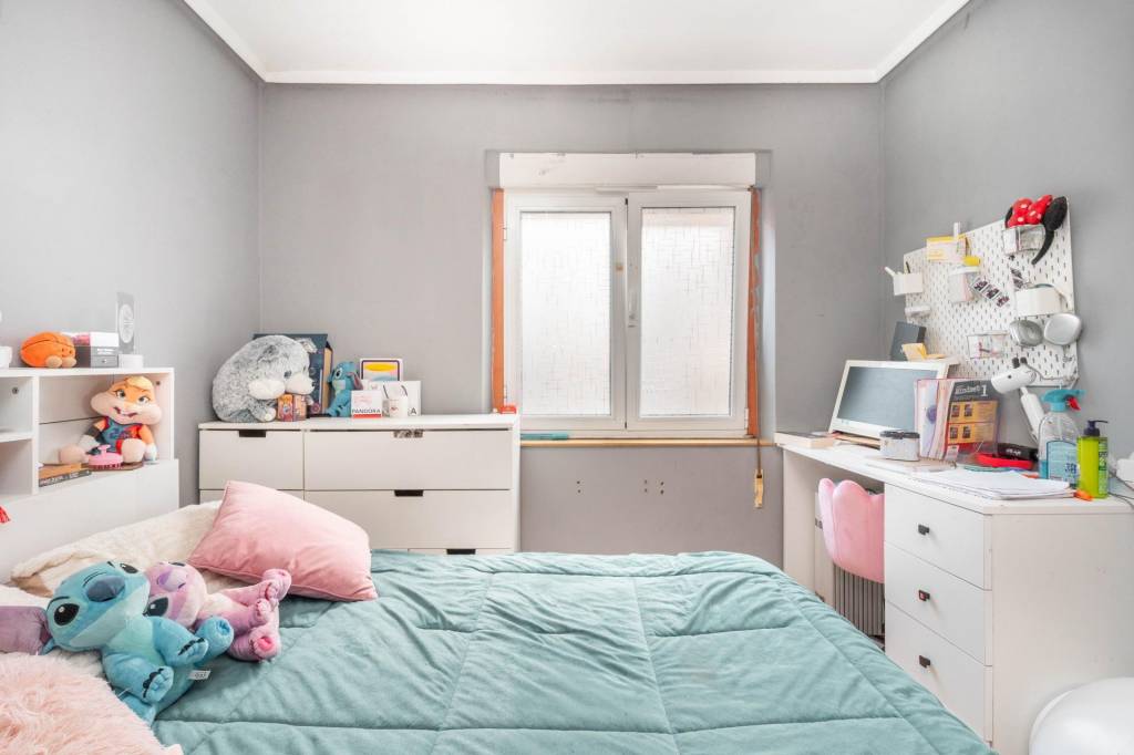 Desde la zona principal, se da acceso a los tres dormitorios. El primero, de mayor tamaño, posee la tercera ventana con vista al patio de luces y un armario empotrado con espejo, que permite una alta capacidad de almacenaje. Los otros dos dormitorios, ligeramente menores en tamaño, se encuentran uno al lado del otro y ambos con vista a la calle principal,