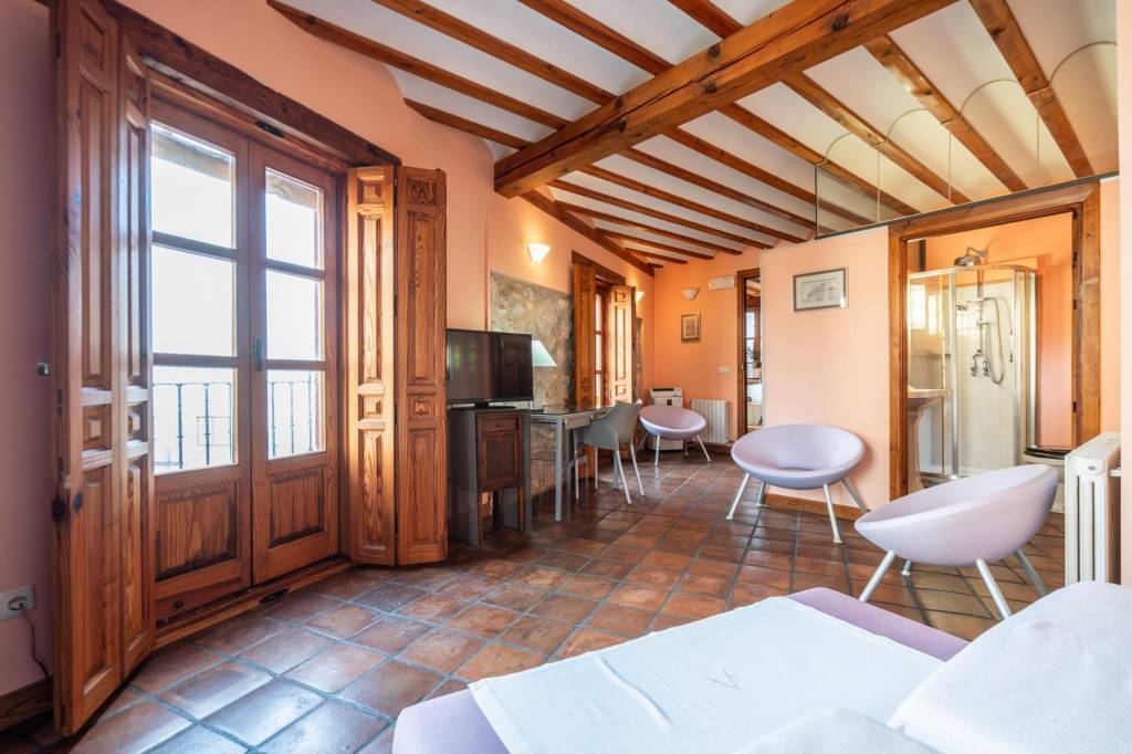 Actualmente dispone de tres habitaciones y seis baños, cinco grandes salones, sala de estar y biblioteca, lo que permite una distribución cómoda y elegante, con estancias amplias y luminosas. El edificio conserva elementos singulares que refuerzan su personalidad, como una cueva destinada a vino y catas, ideal para experiencias enoturísticas diferenciadoras. Existe además la posibilidad de habilitar más habitaciones, lo que incrementa notablemente el potencial de rentabilidad del inmueble.