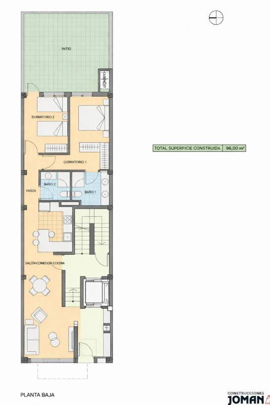 La planta baja cuenta con una superficie construida de 96m² y patio pisable.
