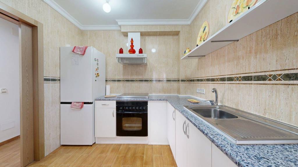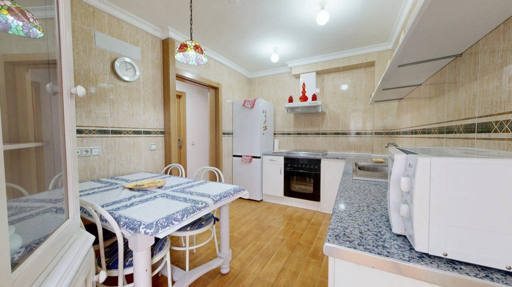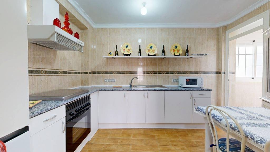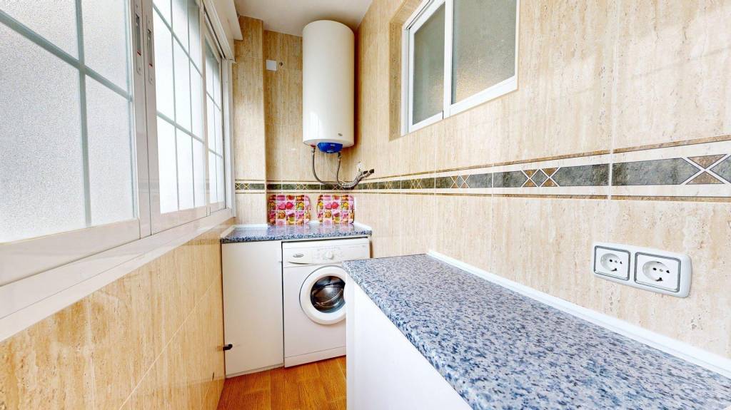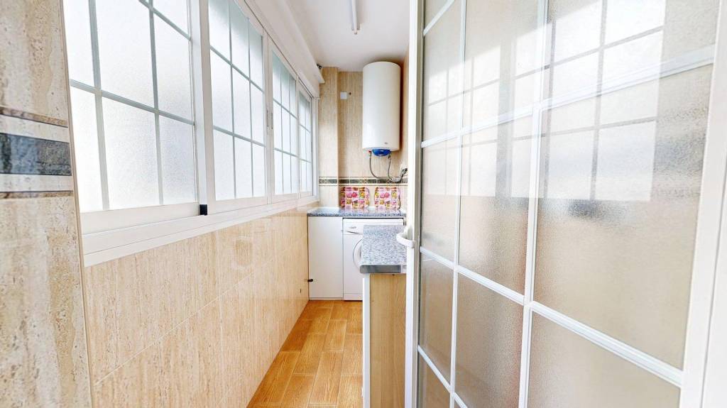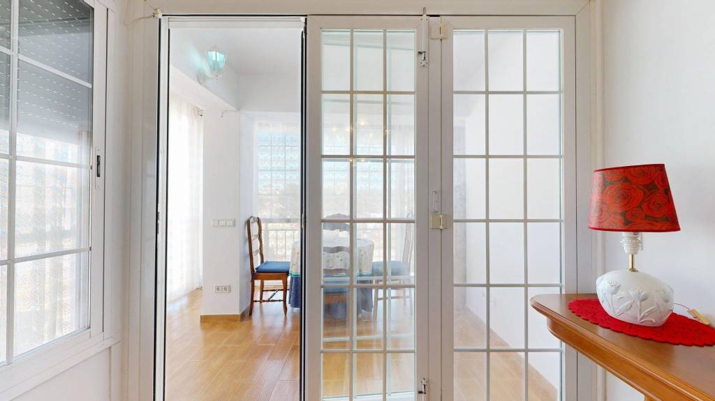Esta amplia propiedad se encuentra a escasos metros del centro de nuestra Villa Marinera, pero en una zona de fácil aparcamiento todo el año. La vivienda posee espacios diáfanos, ya que fue reformada para aprovechar al máximo los metros útiles. Se distribuye en dos amplios dormitorios, cocina independiente (equipada y amueblada), con galería, baño completo con plato de ducha, y un luminoso salón comedor con acceso a su terraza acristalada con orientación oeste y norte. La mampara que abre paso a la terraza es plegable, por lo que se puede abrir completamente para unificar ambos espacios.