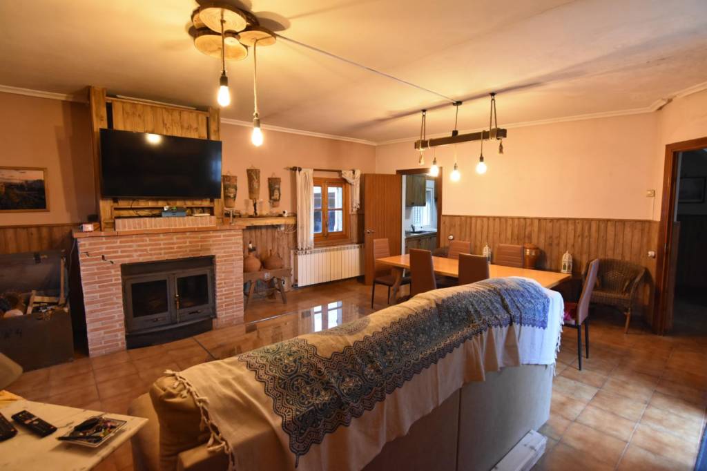 En la planta baja se encuentra el salón comedor con una maravillosa chimenea de casete que da servicios al salón, con acceso directo a la cocina independiente, un baño &;completo reformado para tener amplitud y acceso fácil además de 2 habitaciones de gran tamaña, una de ellas con litera y la otra con una cama grande .