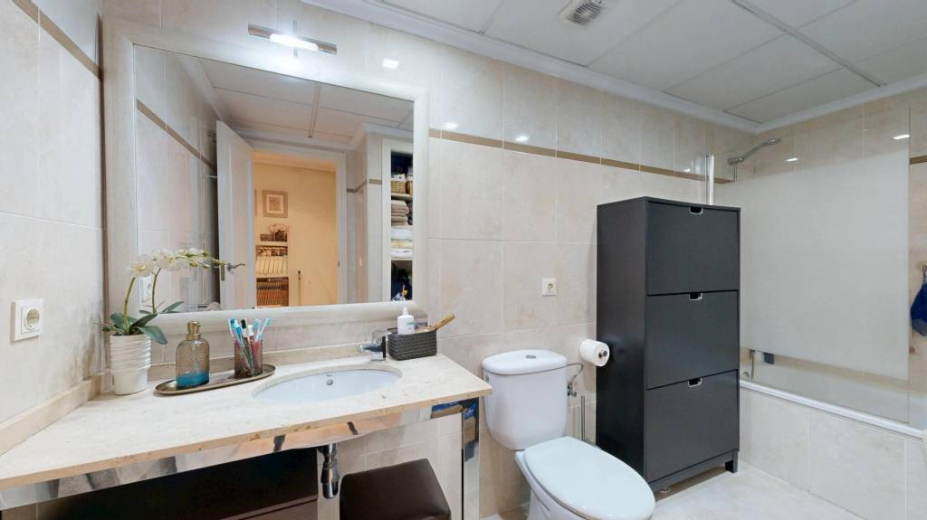 El inmueble cuenta con tres habitaciones dobles perfectamente distribuidas, dos baños completos (uno de ellos en suite) más un aseo adicional. Además, destaca por sus agradables espacios exteriores como una terraza privada que suma aproximadamente 18,60 m²; perfecto para relajarse al aire libre, puerta blindada por seguridad reforzada, trastero incluido que proporciona soluciones adicionales para almacenamiento, y plaza de garaje.
