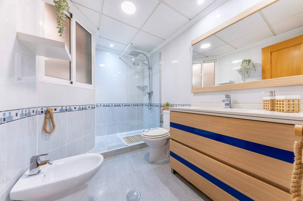 Dispone de dos dormitorios dobles, ambos volcados a sus propios patios interiores, algo poco habitual que aporta una tranquilidad difícil de encontrar: más silencio, más privacidad y una sensación constante de refugio. A esto se suman dos baños completos, un detalle que marca la diferencia en el día a día: mañanas más fluidas, más intimidad y menos prisas.