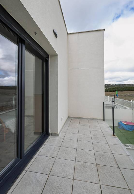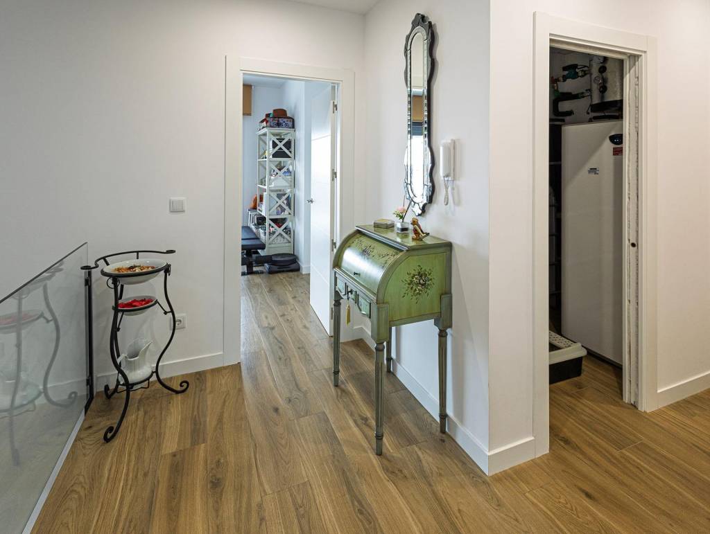 Entre sus características más destacadas tenemos el sistema de calefacción de suelo radiante por AEROTERMIA y las ventanas oscilobatientes CLIMALIT que garantizan una máxima eficiencia energética y un buen aislamiento, suelos de tarima y la terraza trasera donde relajarse y descansar o reunirse con familia y amigos.
