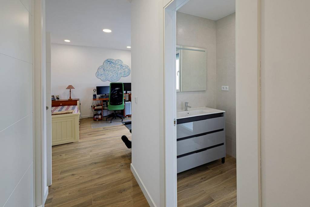 En la planta alta, tenemos tres dormitorios dobles con armarios empotrados, el principal con baño en suite y terraza y un segundo baño completo.