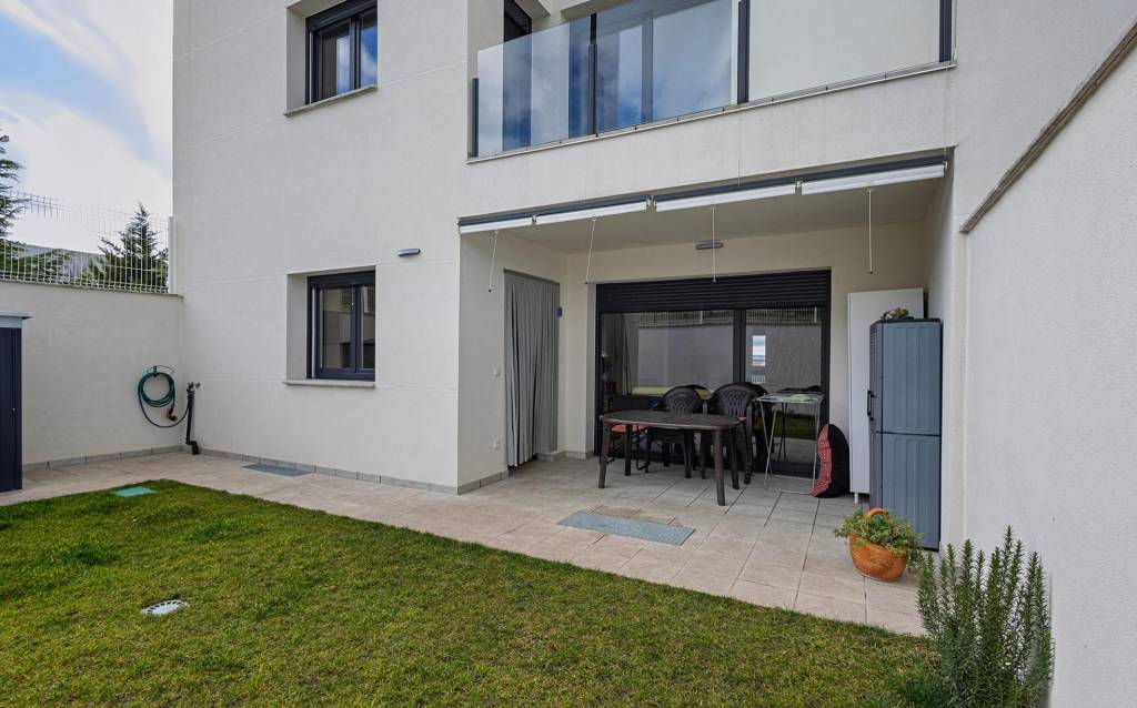 En la planta baja contamos con una cocina completamente equipada con todos los electrodomésticos, baño completo, salón comedor con acceso al jardín trasero y un dormitorio con armario empotrado para mayor comodidad.