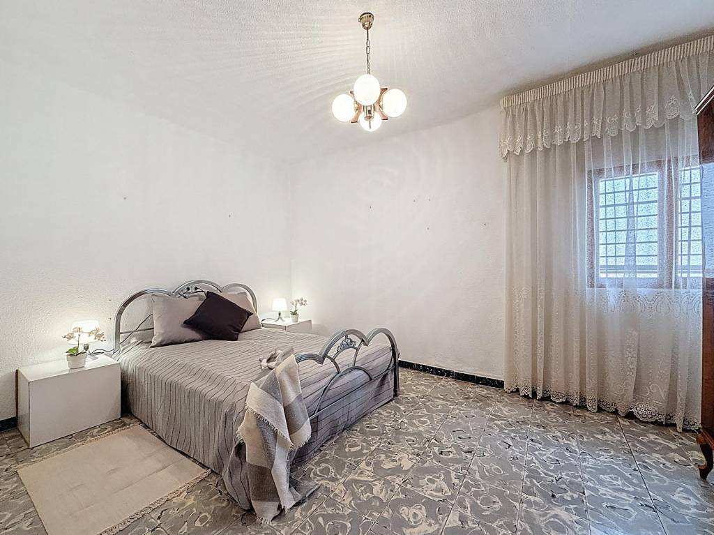 En la primera planta (acceso por 12 peldaños) hay una despensa–trastero, un dormitorio, el dormitorio principal, una salita y un salón con vistas a la fachada principal.