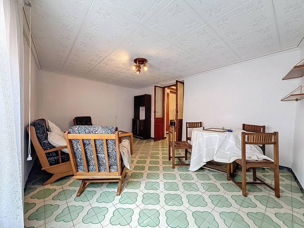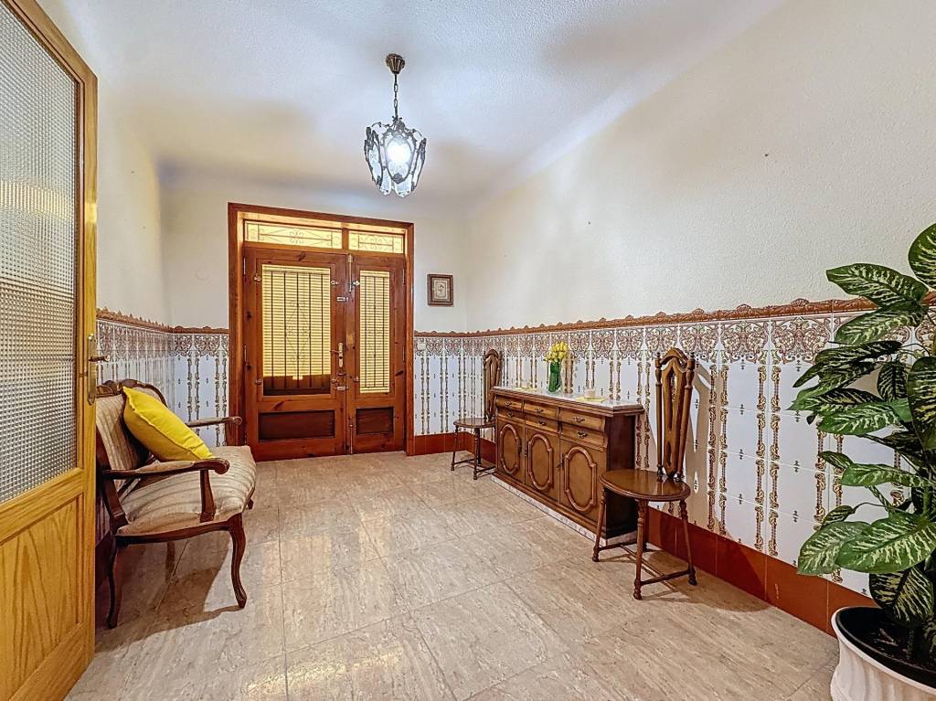 En la planta baja encontramos el hall de entrada, un salón-comedor, una salita con chimenea, estancias adicionales que pueden destinarse a dormitorios, despacho o zonas auxiliares (la vivienda cuenta con 4 habitaciones en total, de las cuales 3 son interiores sin ventana), además de un comedor interior. La zona de cocina dispone de dos cocinas con algunos electrodomésticos, y un patio techado en el área de cocina donde se ubica el termo. Completa esta planta un baño mediano con ducha.
