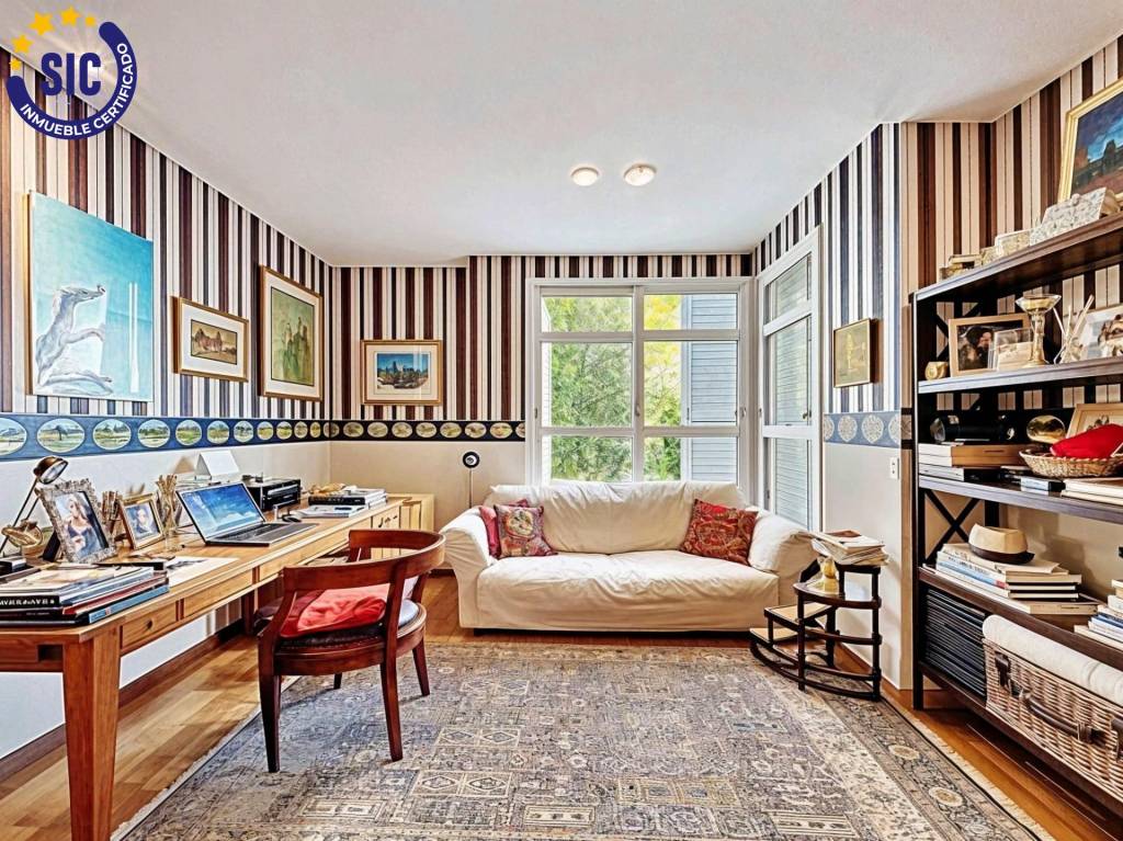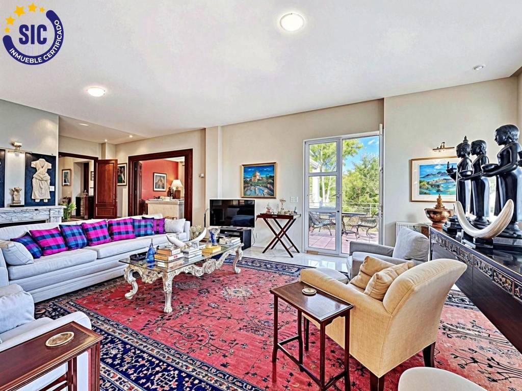 El corazón de la vivienda es un salón majestuoso bañado en luz natural, conectado con una elegante biblioteca y un comedor de gala. La distribución incluye 6 habitaciones dobles y 5 baños con acabados en materiales nobles.