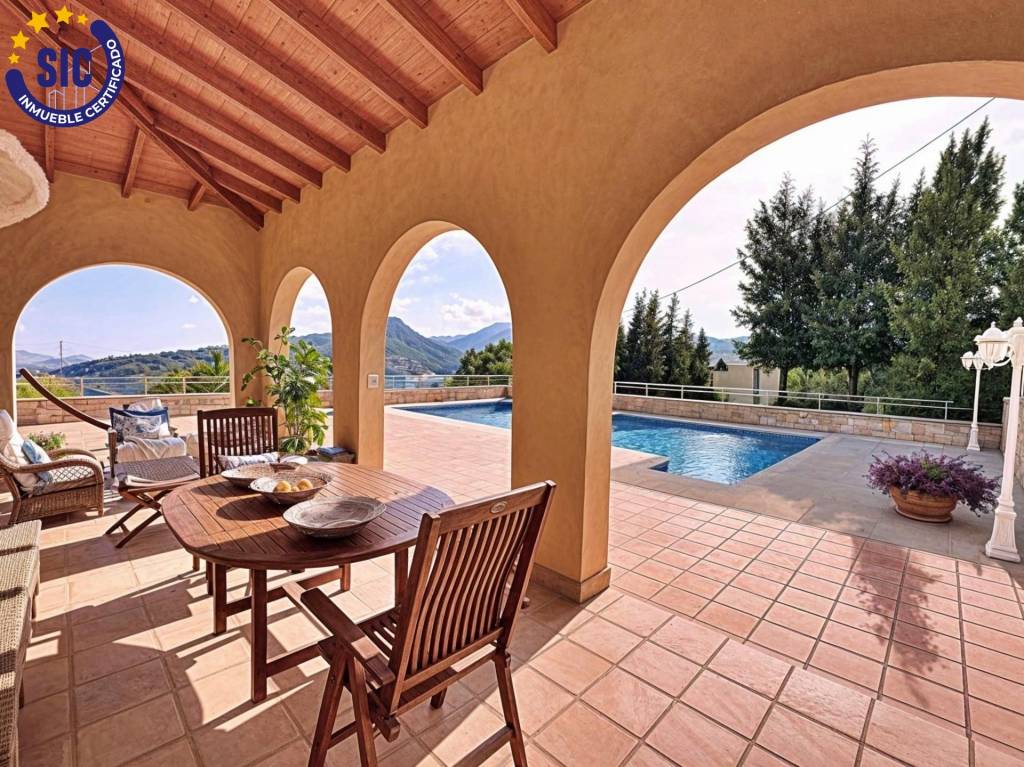 Descubra una propiedad donde la privacidad absoluta se combina con un diseño señorial excepcional. Situada en la zona más elevada y prestigiosa de la urbanización El Respirall, esta residencia de 483 m² sobre una impresionante parcela de 3.800 m² ofrece un estilo de vida incomparable en el corazón de la Comunidad Valenciana.