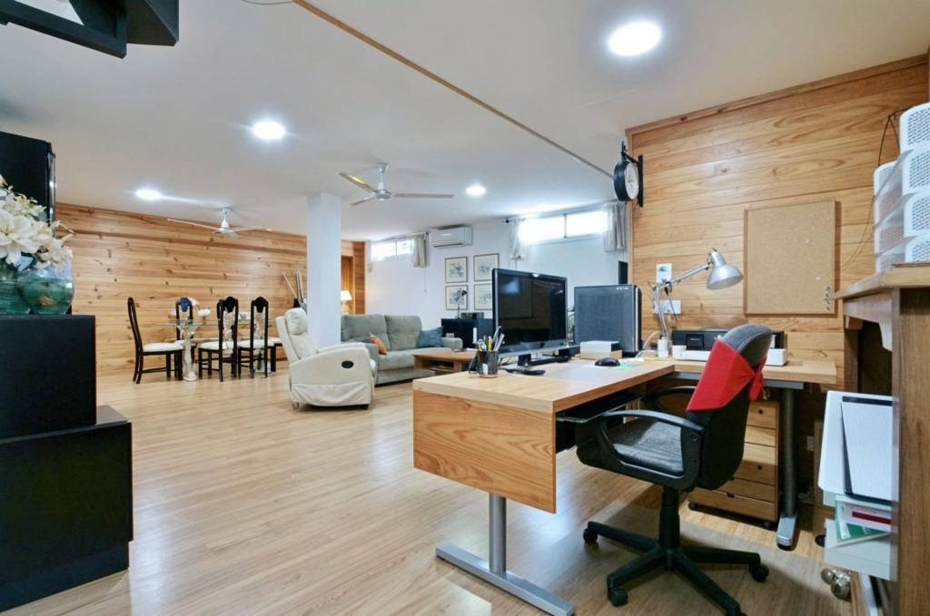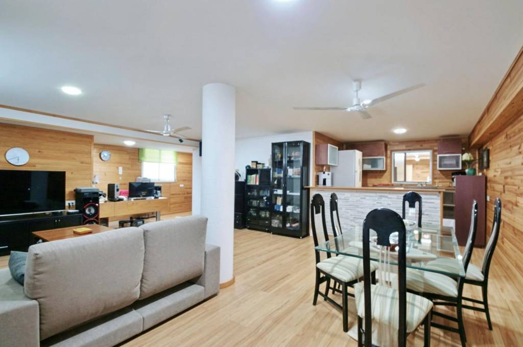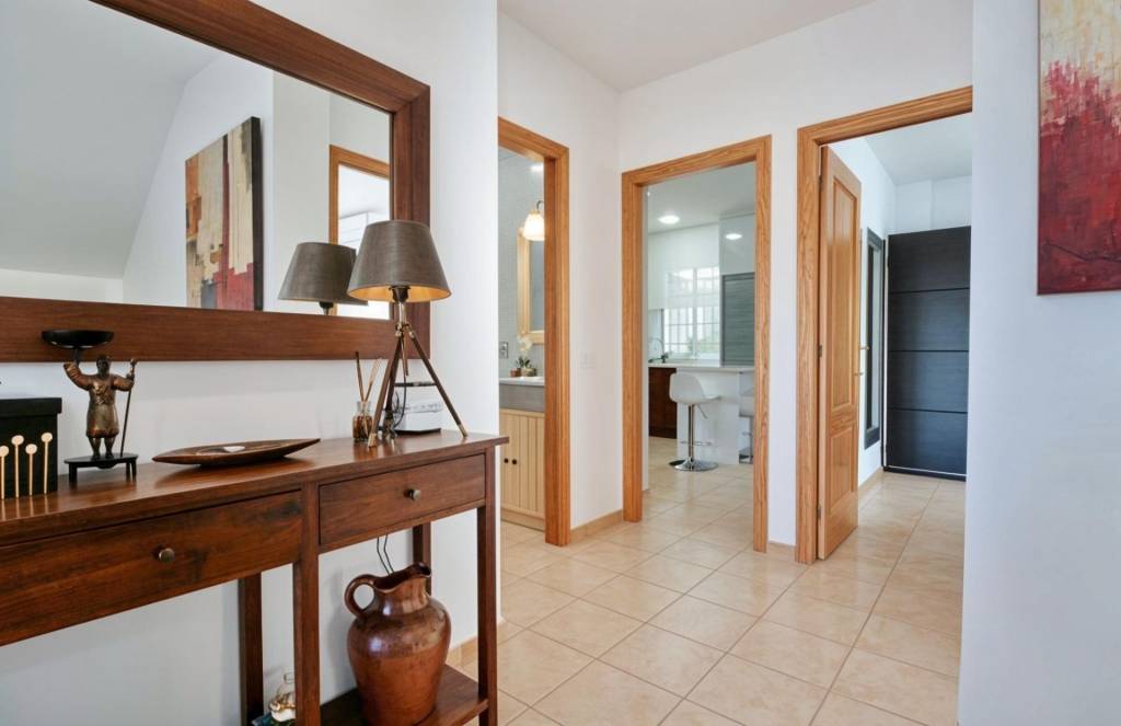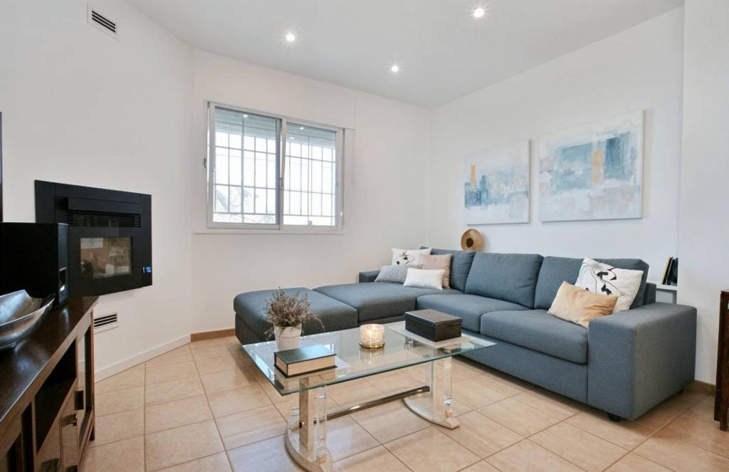 El salón principal se integra de forma natural con la terraza y la piscina privada, generando continuidad visual y una agradable sensación de amplitud. La orientación de la vivienda y los grandes ventanales potencian la luminosidad y el confort térmico.