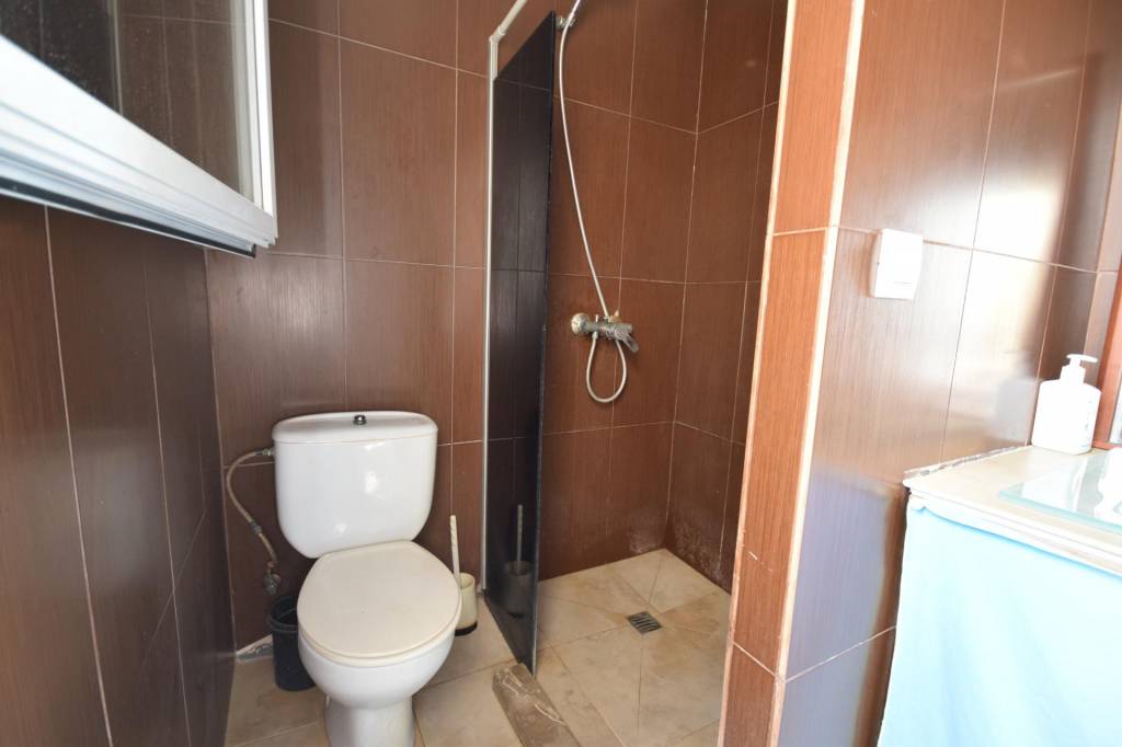 A su lado, un pequeño baño que dispone de plato de ducha, lavabo con mueble, espejo y WC.
