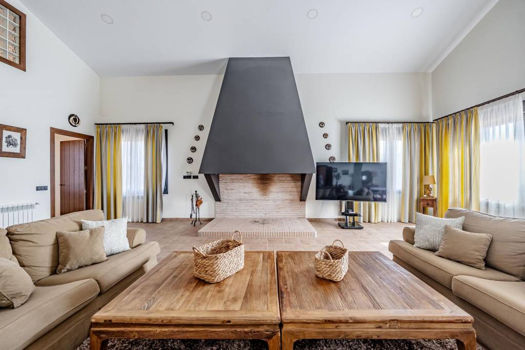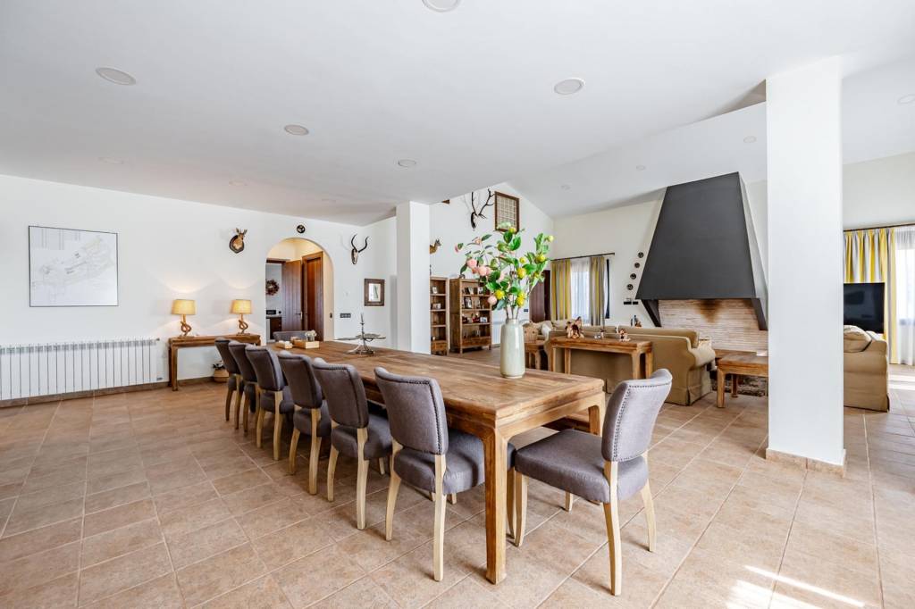 La casa principal que cuenta con 462 m² construidos distribuidos en dos plantas, ha sido reformada recientemente y esta lista y preparada para disfrutar desde el primer día. Para entrar a la vivienda pasamos por un gran porche con barbacoa, una vez dentro desde un amplio hall accedemos por la derecha a un gran salón comedor con una impresionante chimenea de grandes dimensiones, de frente pasamos a la cocina que cuenta con isla, zona de office, lavandería y despensa. Por la izquierda un pasillo nos adentra a la zona de noche con tres dormitorios de gran amplitud que cuentan con dos baños completos para dar uso a estos. Además de estos dos baños, en el hall de entrada hay un aseo de cortesía.