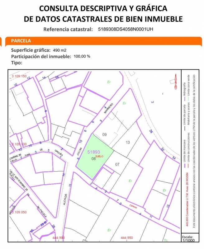 - Parcela: 490m2